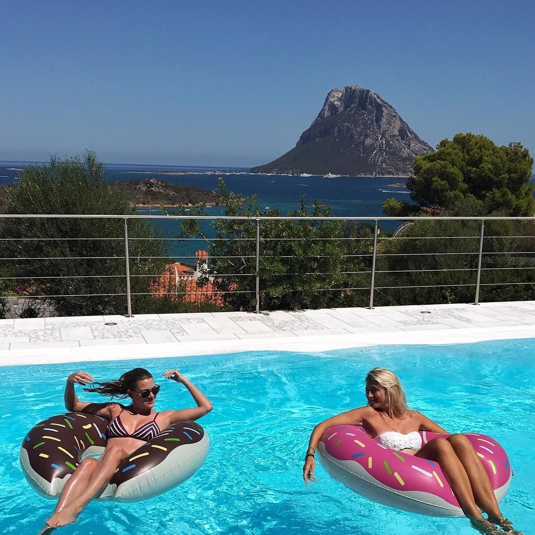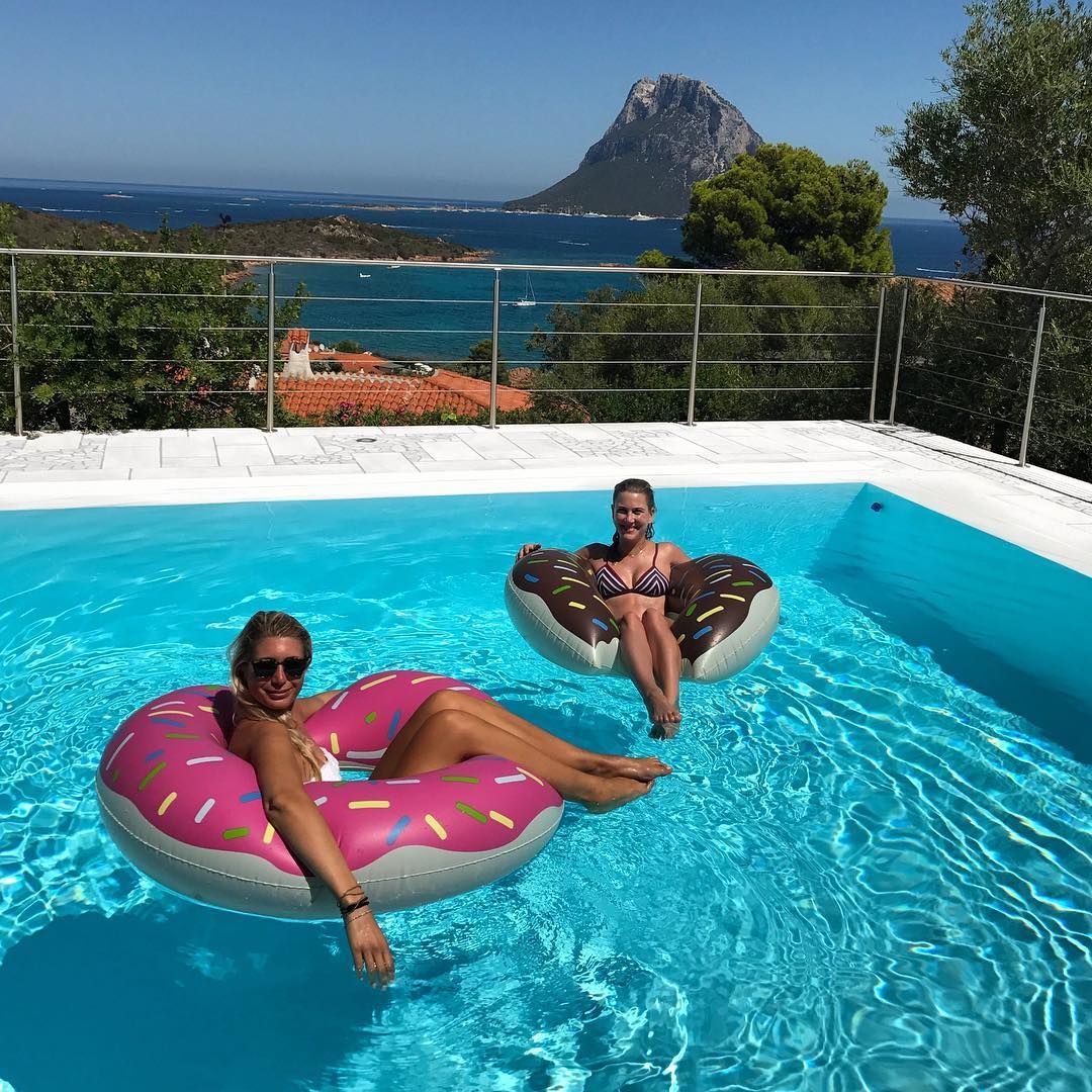 Women on pool inflatables