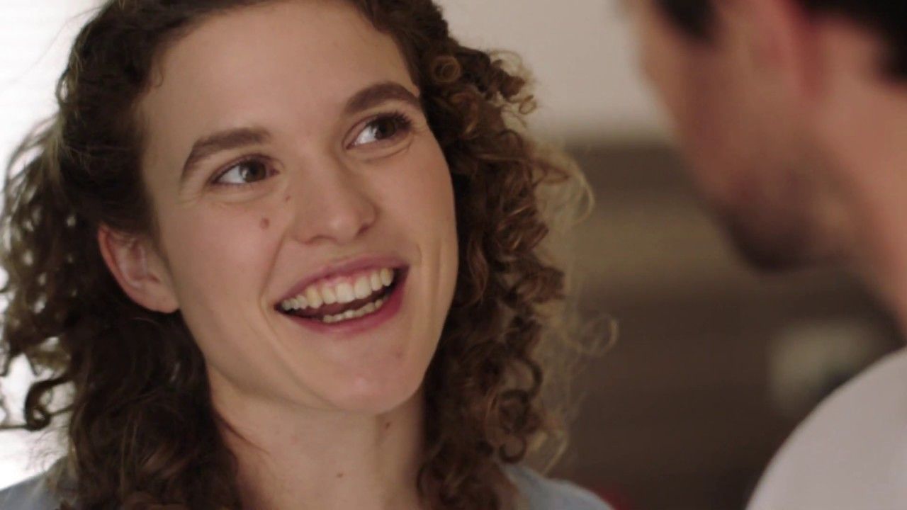 Blonde woman with a fringe walking down a lane in a Vodafone ad?
