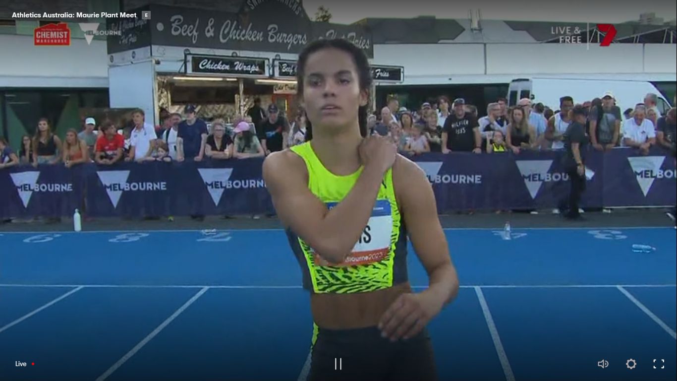 Here are some random screenshots of the just finished Maurie Plant athletics meet. I suppose there's a pretty good reason why most of them are of Bree Masters. It won't be my last post of her.