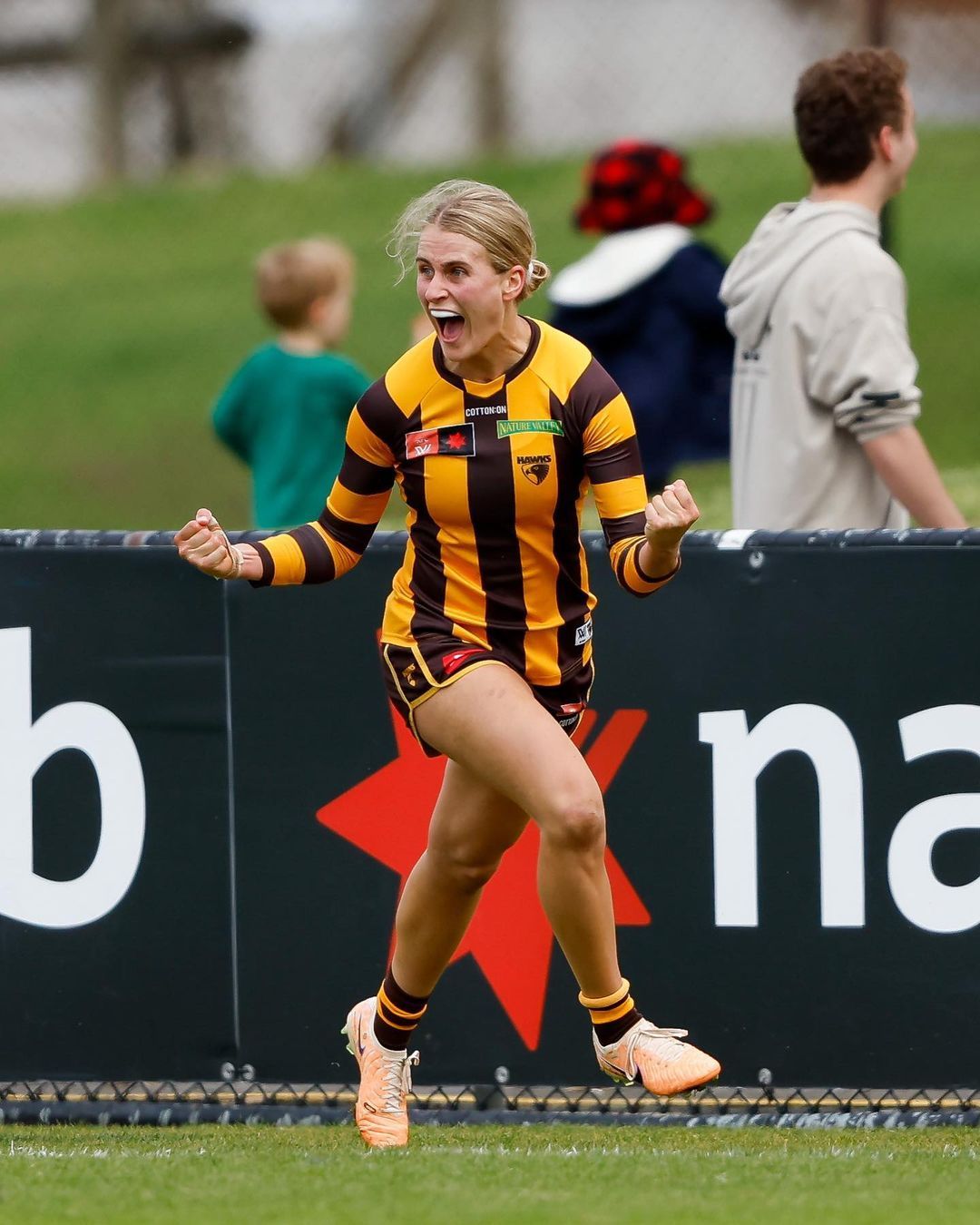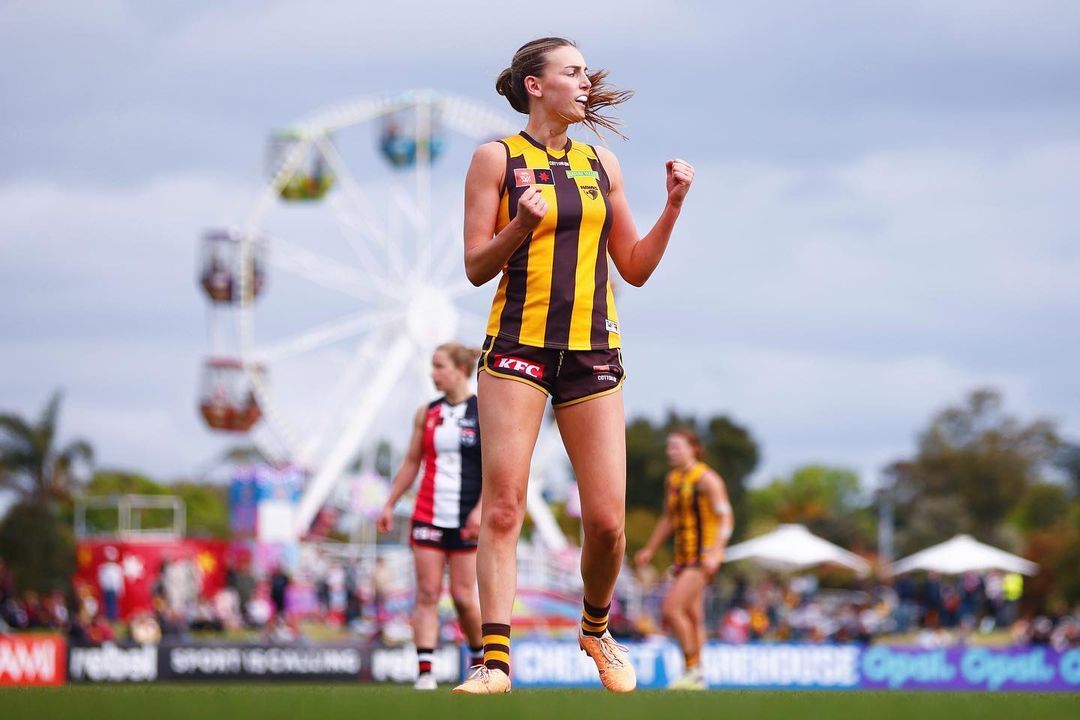 She is a cutie, but not actually an aussie. She came across to the Hawks from Ireland, where she represented Galway in gaelic football and the NUIG Mystics in basketball. Seems quite a number of AFLW girls are imports, not enough aussie to footy ?