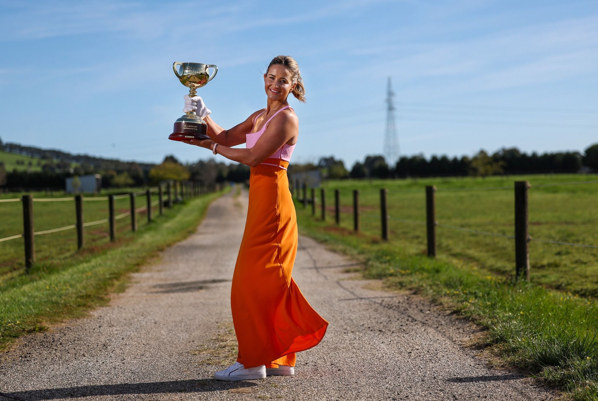 Michelle taking the Melbourne Cup around to various places