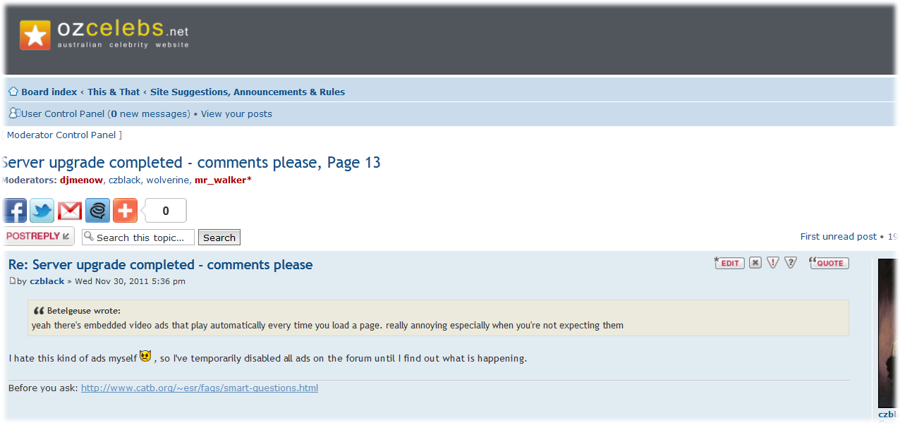 sharkboi wrote: czblack wrote: I added social sharing buttons to topic and forums pages - 92 shares in 10 minutes, keep it up people and share as you can :)  I can't see them, do you have an image of what I'm looking for? Should be below topic/forum title: