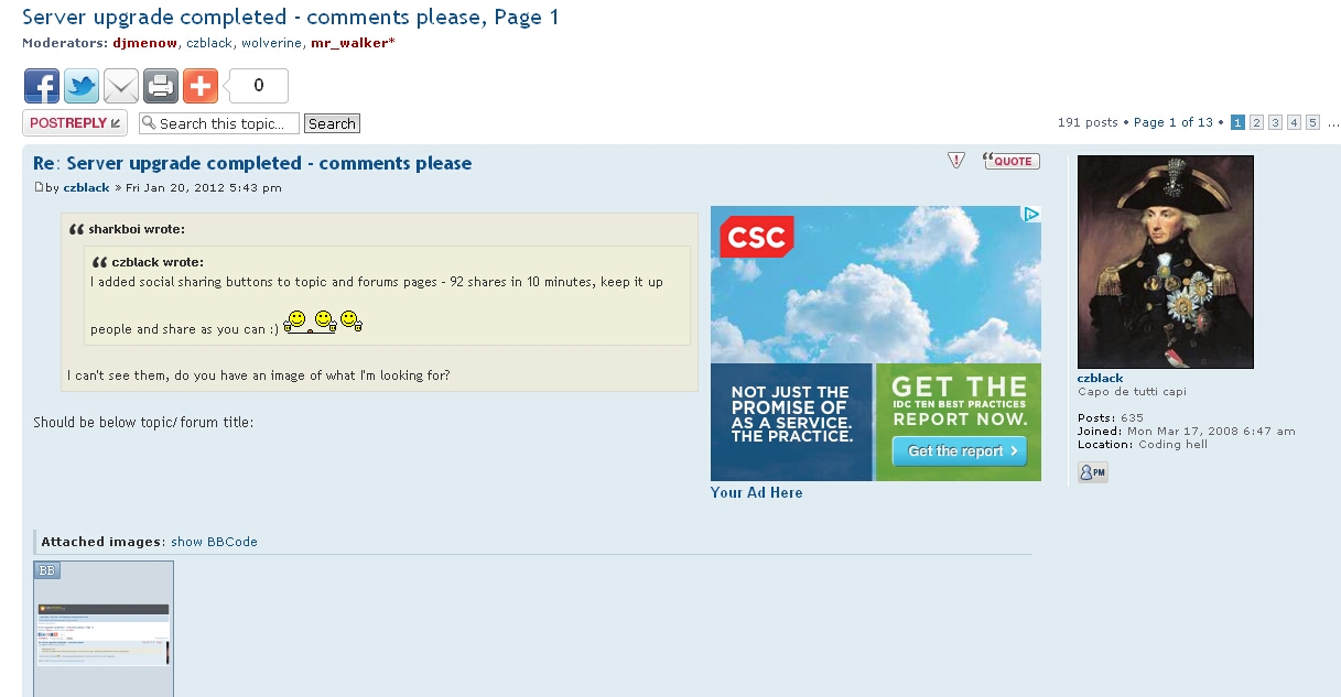 czblack wrote: I added social sharing buttons to topic and forums pages - 92 shares in 10 minutes, keep it up people and share as you can :)  I can't see them, do you have an image of what I'm looking for?