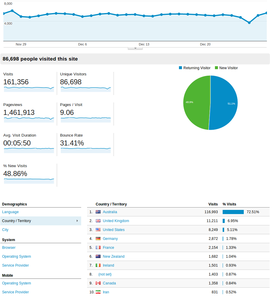 wolverine wrote: 39 shares so far, mostly various forums rather than individual threads. I'm guessing some of them are members being curious and pressing buttons to see what it does. Share is recorded on button click even when URL hasn't been included in any social media posts etc. Stupid, I know... The following images should satisfy your curiosity  These stats are for one month prior to today. Traffic is down a little because of the holidays. Last image is stats on full size images being viewed. We serve about 1.5 million full size images per month. On average between 300 to 600 images are uploaded every day. These are some impressive stats and we can all be proud to be part of this community. Just curious as to what the latest stats might be, especially what browsers people are using.