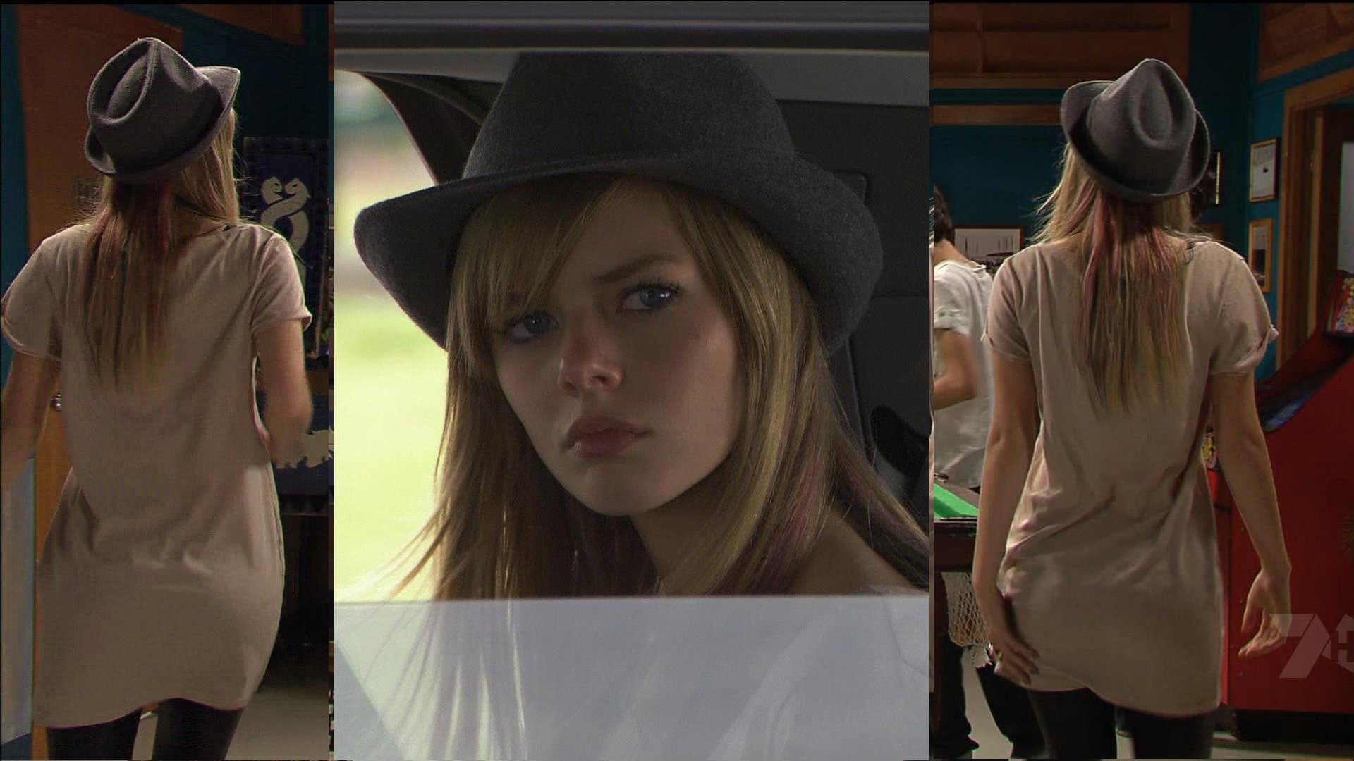 caps from Out Of The Blue, her soap mum died of cancer = no kini or smiley face lol