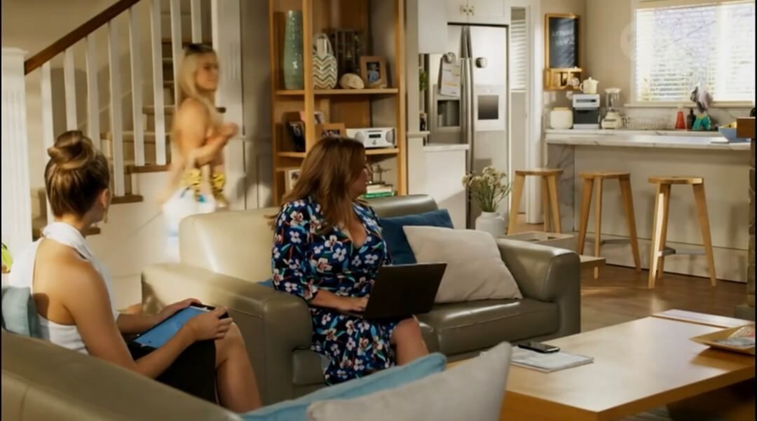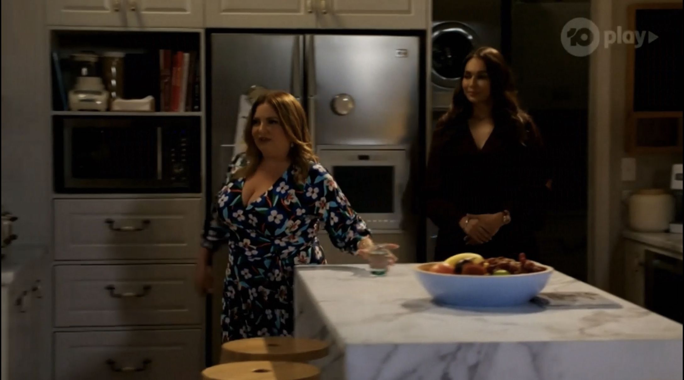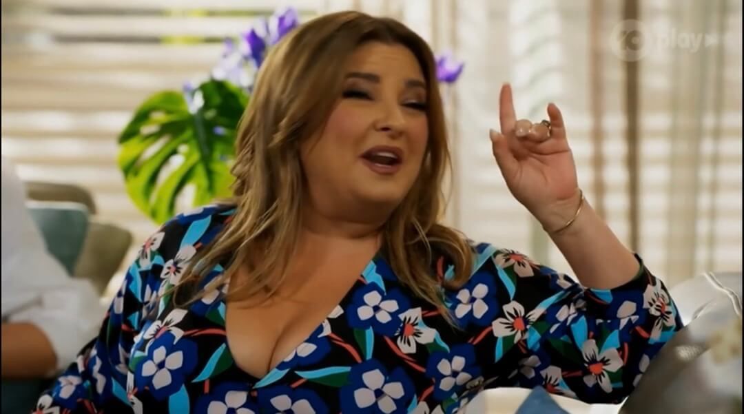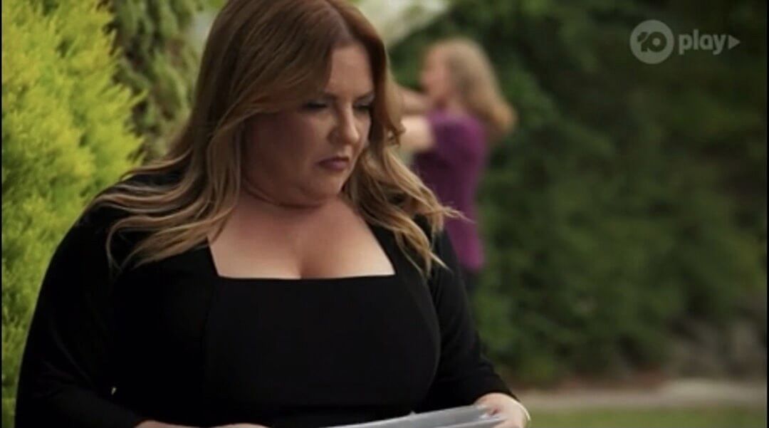 There are several brief glimpses of Rebekah topless at around the 33-34 minute mark. A video excerpt of the scene in question is available here.