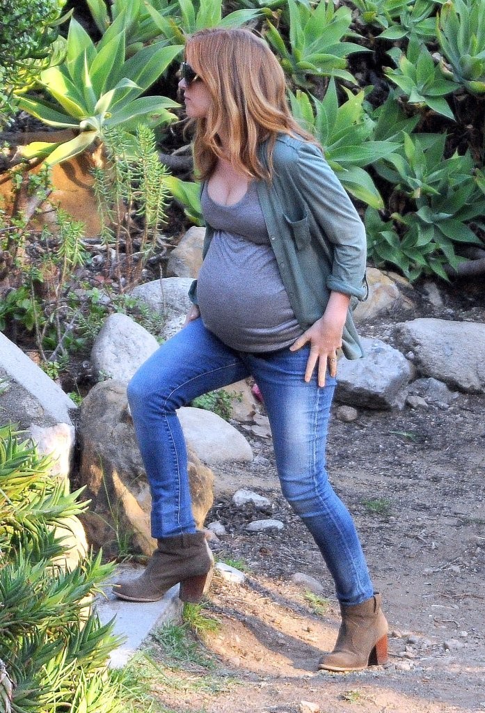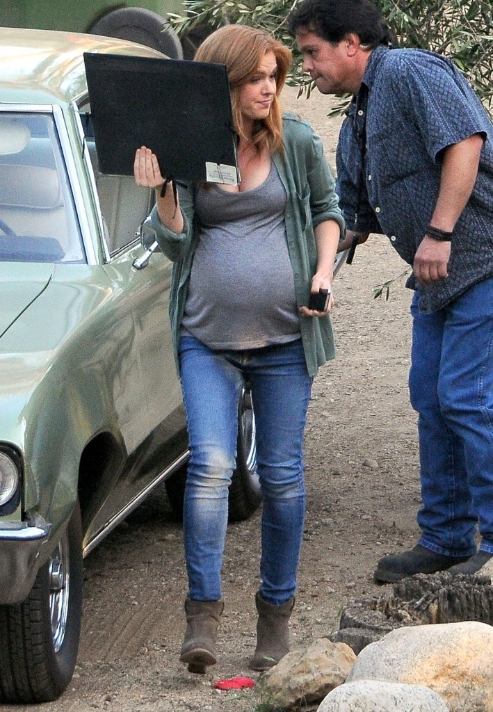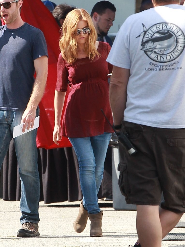 Is she preggers again or just made up like that for a movie?