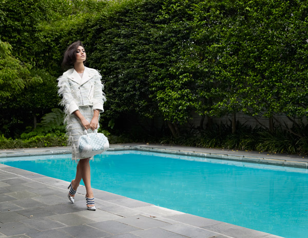 Her latest role, as a popular witch with a taste for dark magic in the US teen drama The Secret Circle (FOX8), has given her a chance to explore this contrasting side—so too, this photo shoot. "It's like the housewife waiting for the pool boy," she laughs.