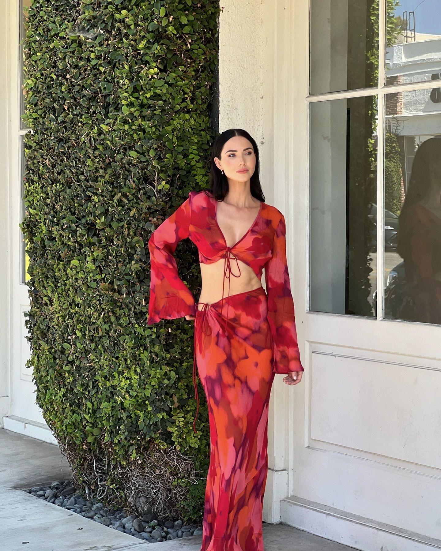 Her breasts stretch the fabric enough to make out a nipple on some of the photos.