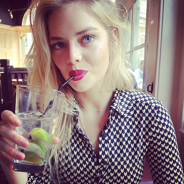 Her tousled blonde locks were teased back at the top and the dark eye make-up accentuated her baby blue eyes.
