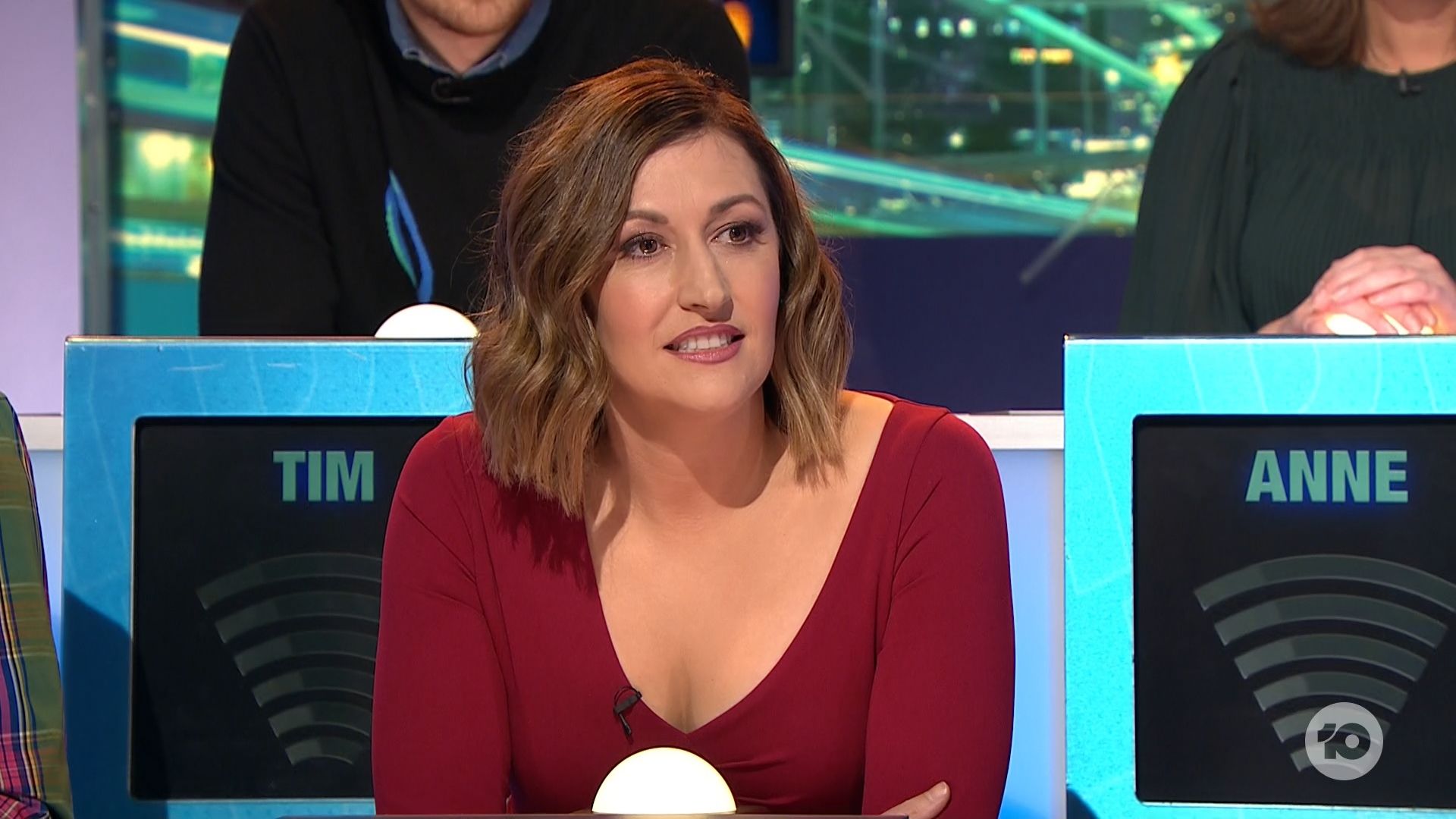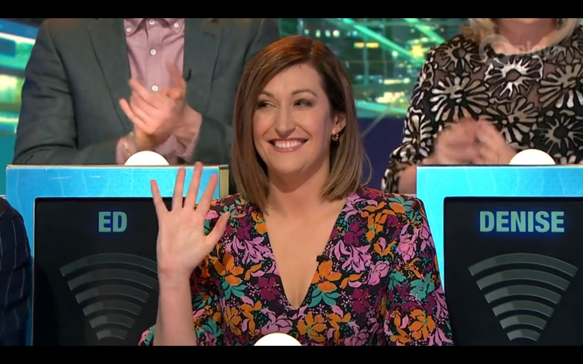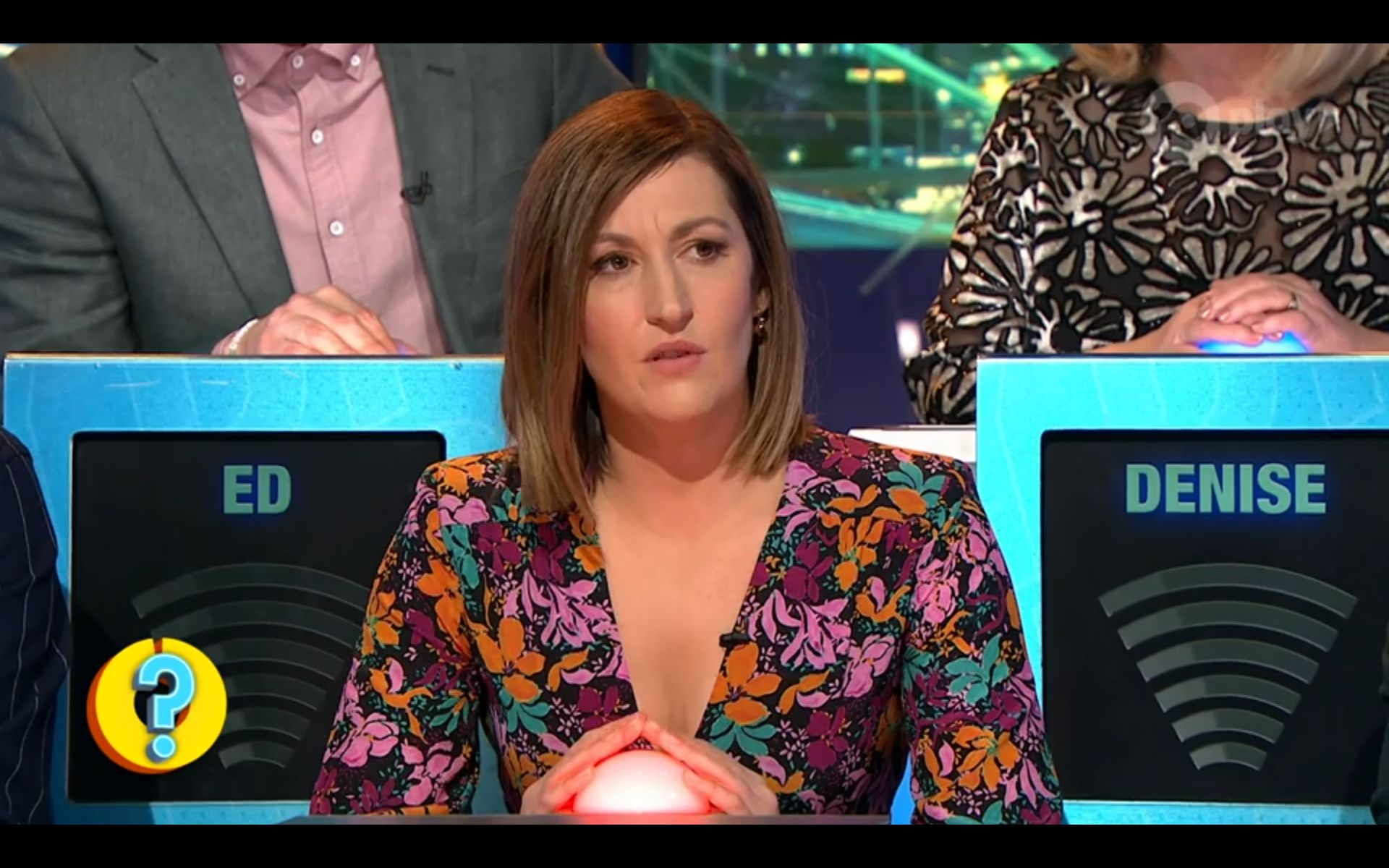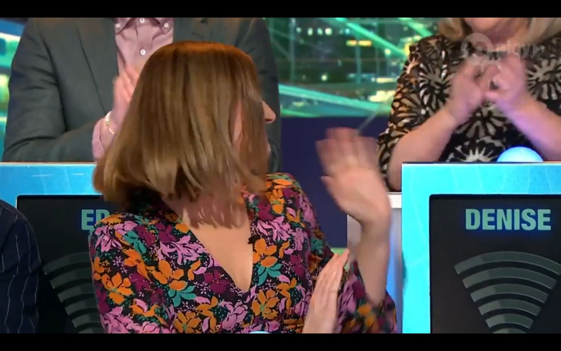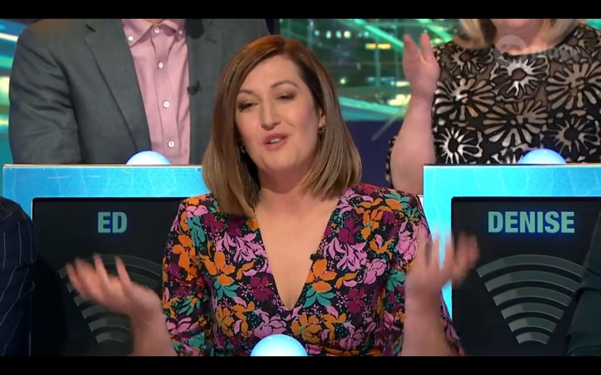 Looking amazing on have you been paying attention tonight. Nice cleavage!