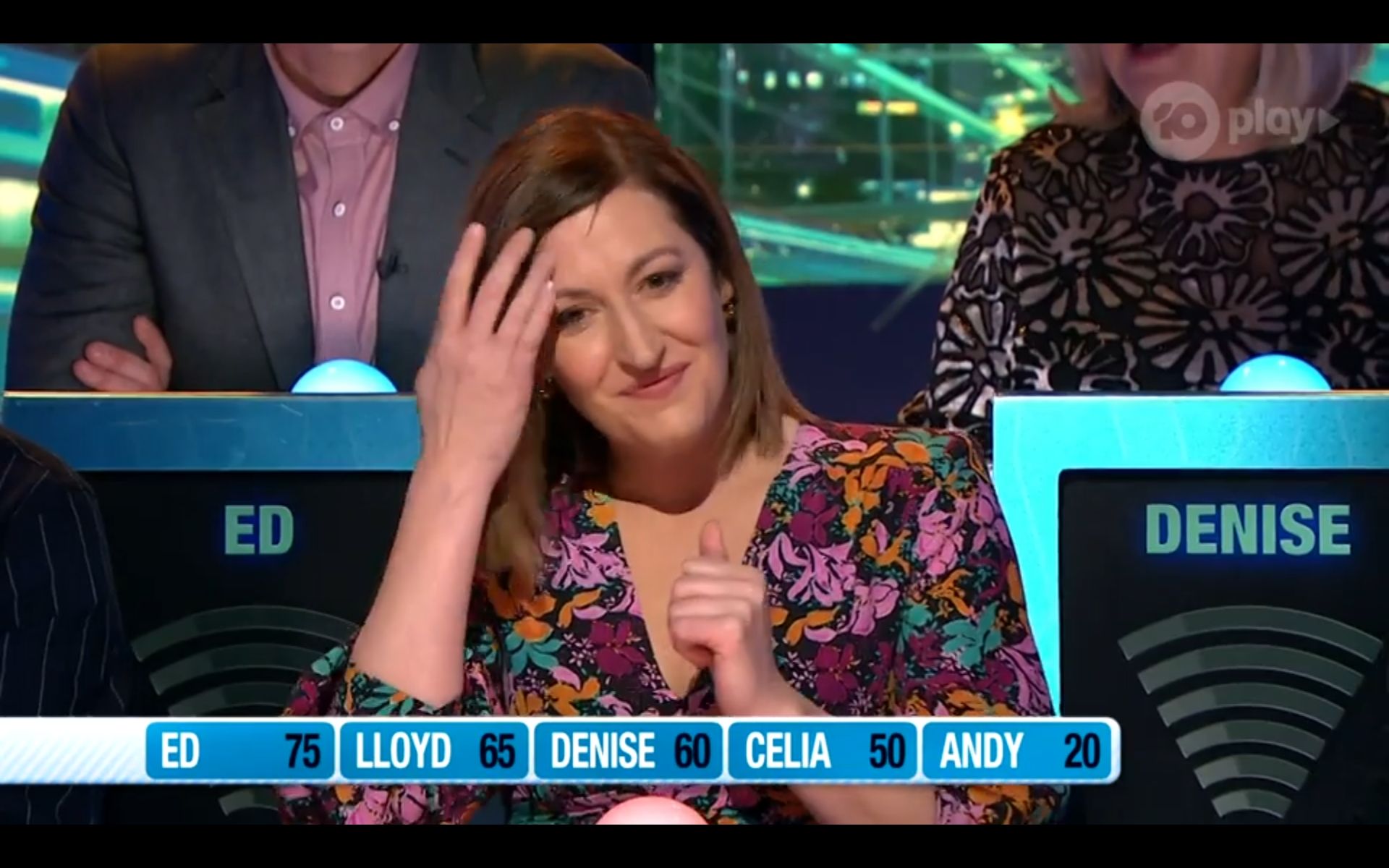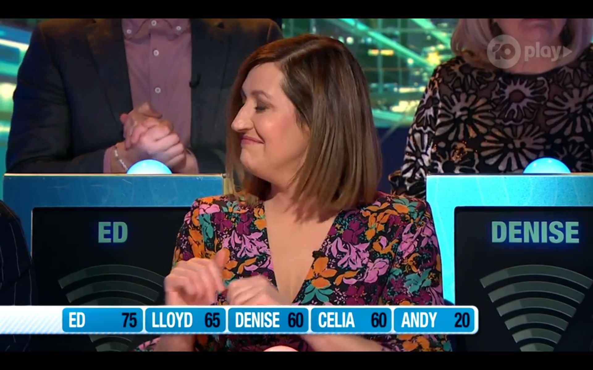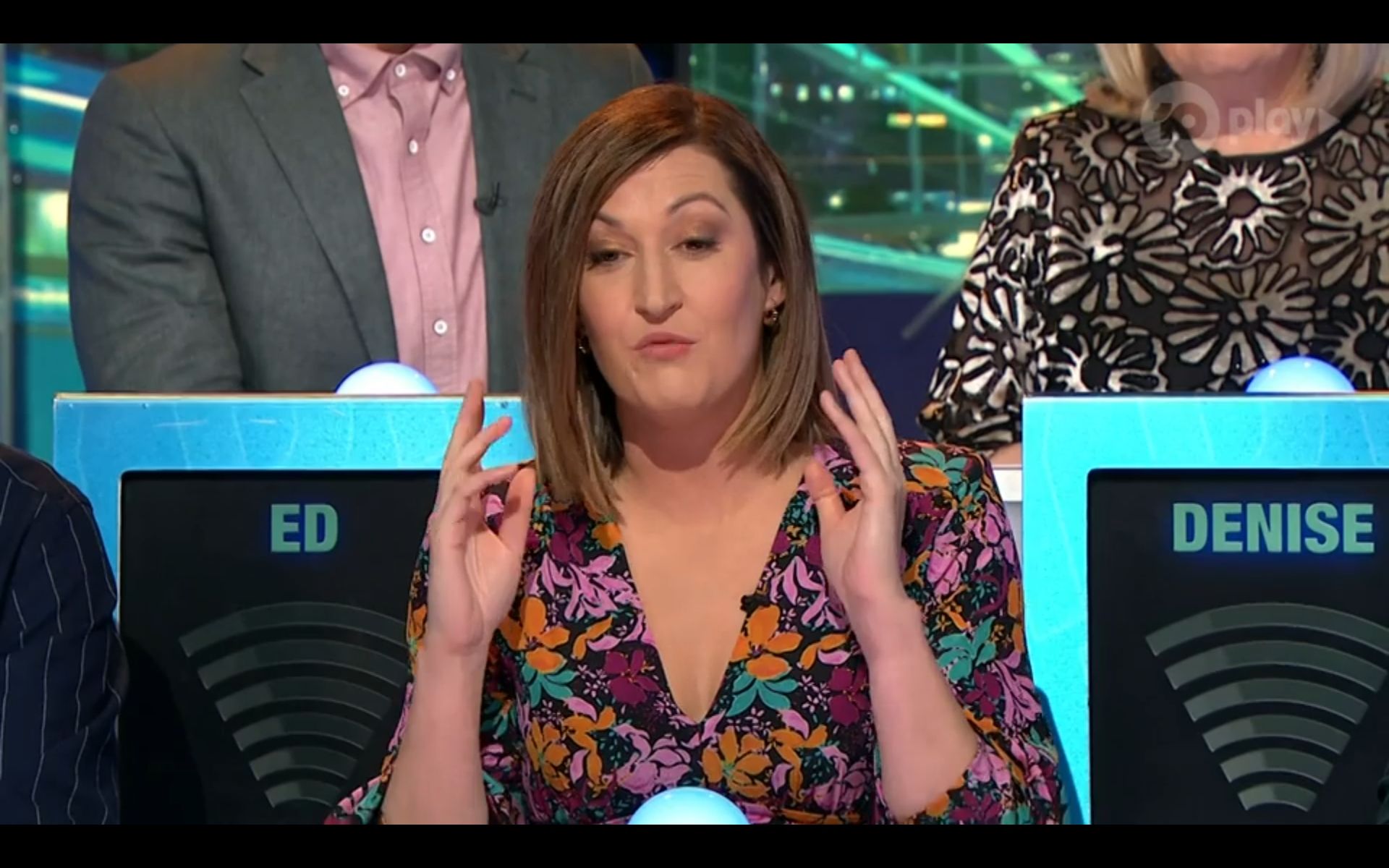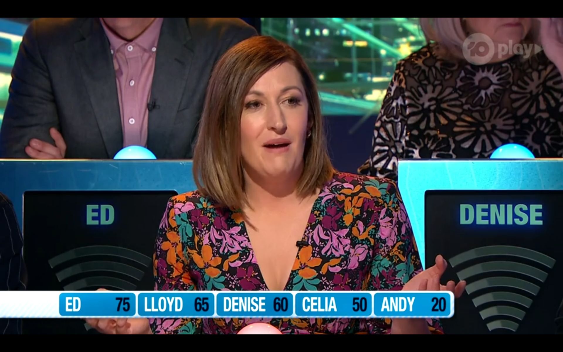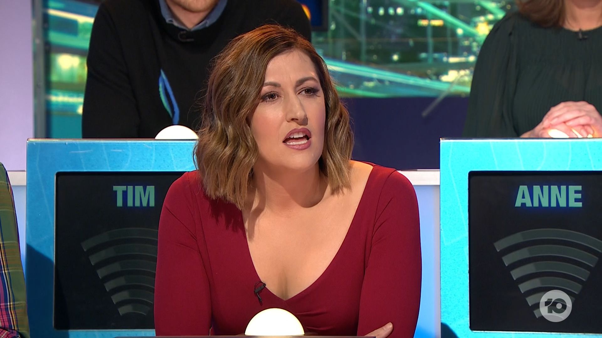 Looking amazing on have you been paying attention tonight. Nice cleavage!