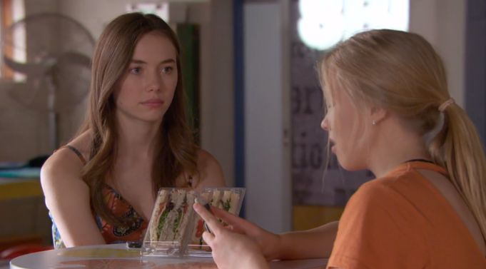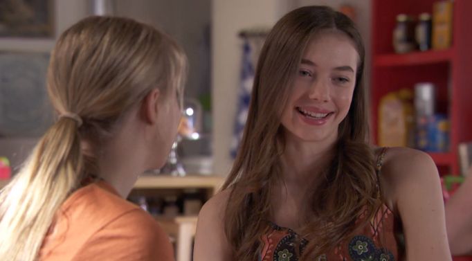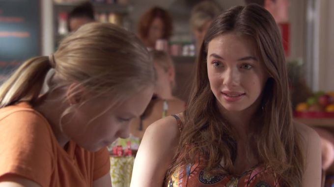Cappers, there was a nice downblouse a couple of weeks ago, when Coco and Maggie were going for a walk along the beach front. Maggie has a giddy spell, and Coco leans down to see if she's OK.
