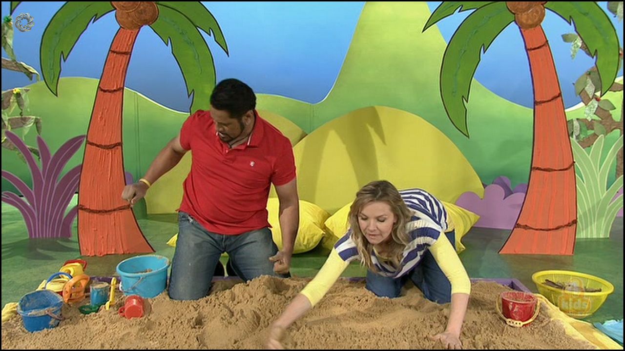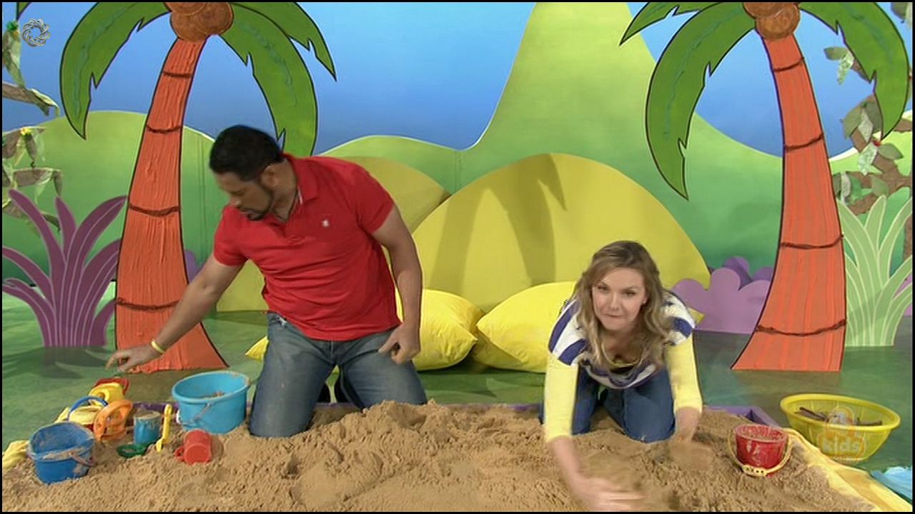 Re: modecko Reply with quote Post Posted: Sun Oct 19, 2014 11:28 am Re: Justine Clarke Some more old Play School sandbox caps. I wished two things. One she wasn't wearing the yellow skivvy and two she had her hair up or cut short.  Agreed modecko - definitely needs to not be wearing the yellow skivvy and would look even better with her hair cut very short Always great to see caps of Justine