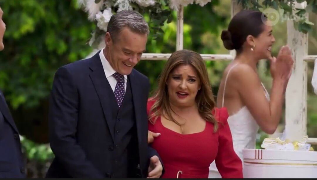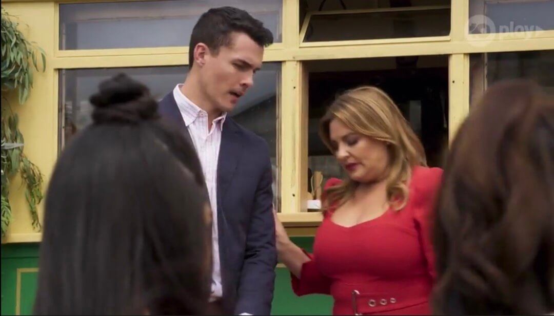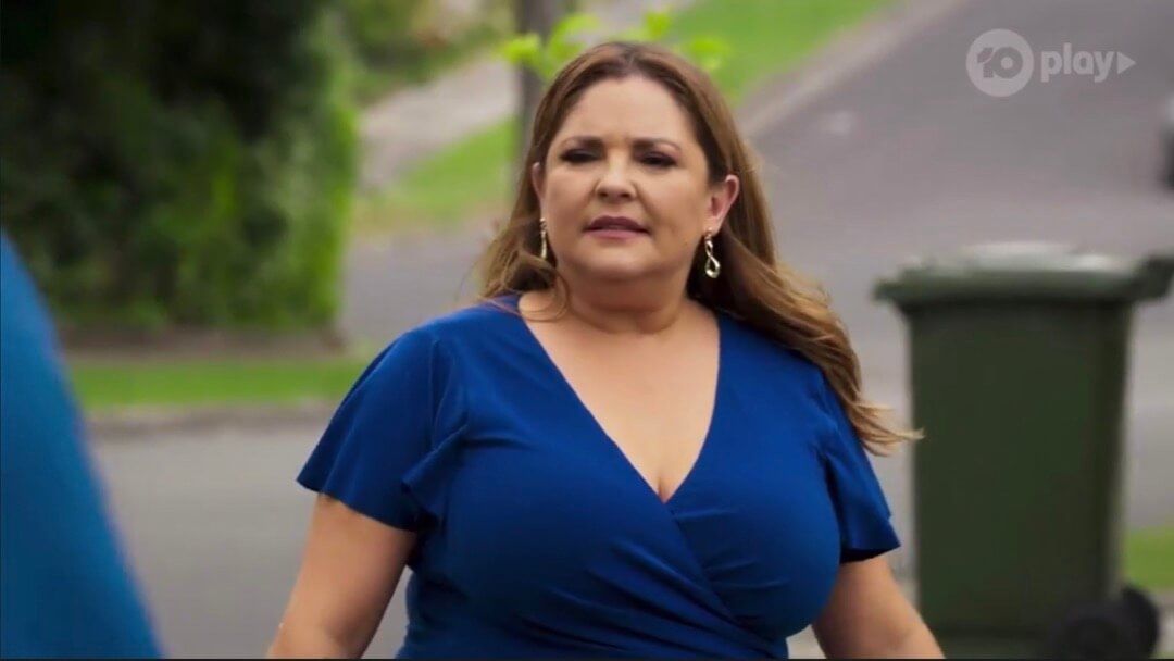 Busty lady in red