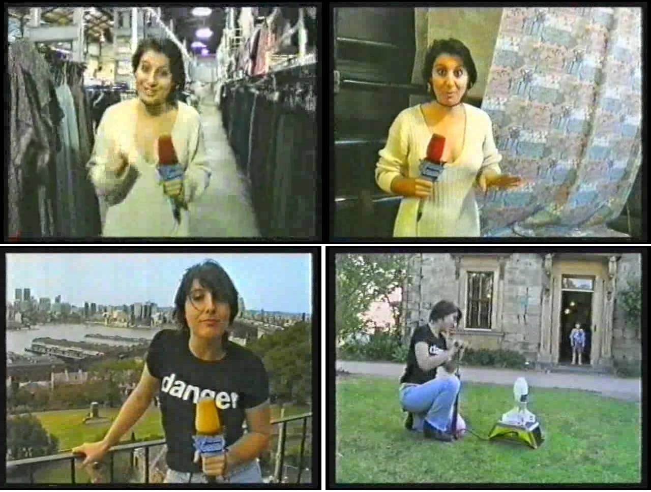 In the first segment, Jodie travels to a fasion factory, where see educates us in how the many early 90's girl's (or confused cross-dressing boy's) fasions we made, all the while dressed in a figure-hugging white jumper. At the segments end, she gives us a quick little fasion show in a number of other sexy and revealing outfits.