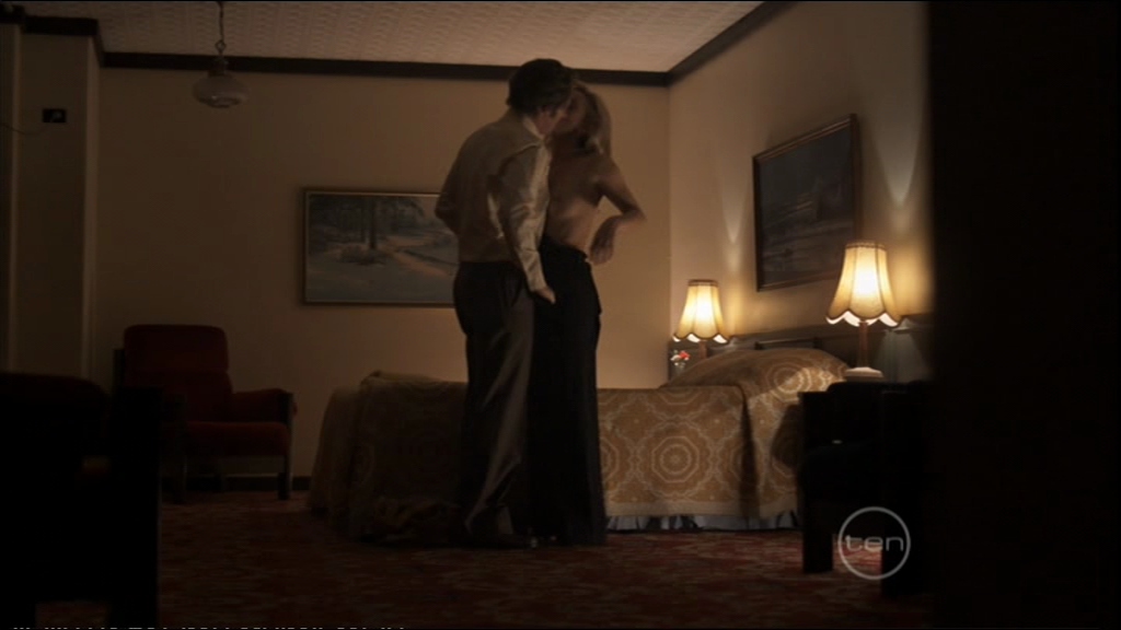 I'll have to try making a clip of the scene. There's a lovely chest bounce as she lands on the bed. She mightn't be hugely endowed but there's more important things than just size  Her Wikipedia entry says she was born in 1974. If that's true, she's a very taught and tidy looking 35/36. Look forward to more action in her new series, "Offspring". D