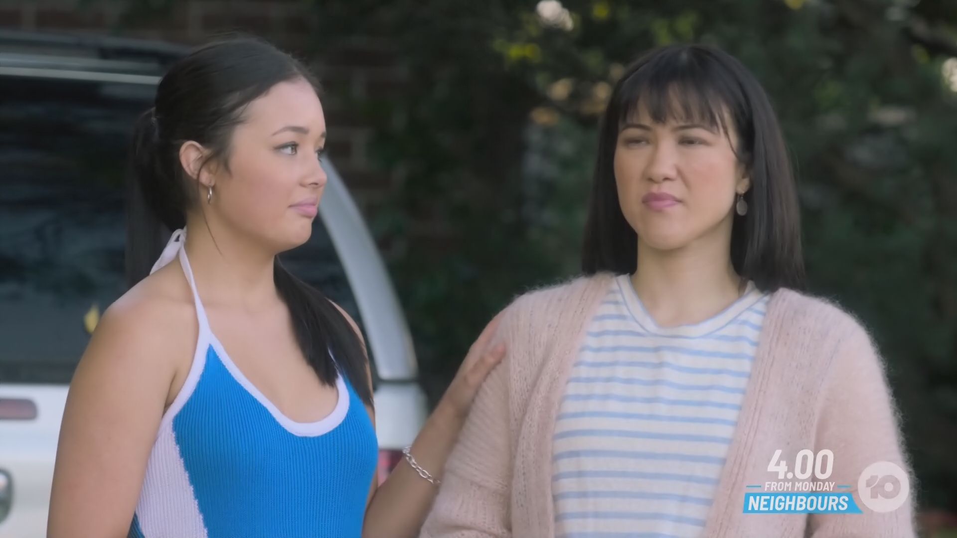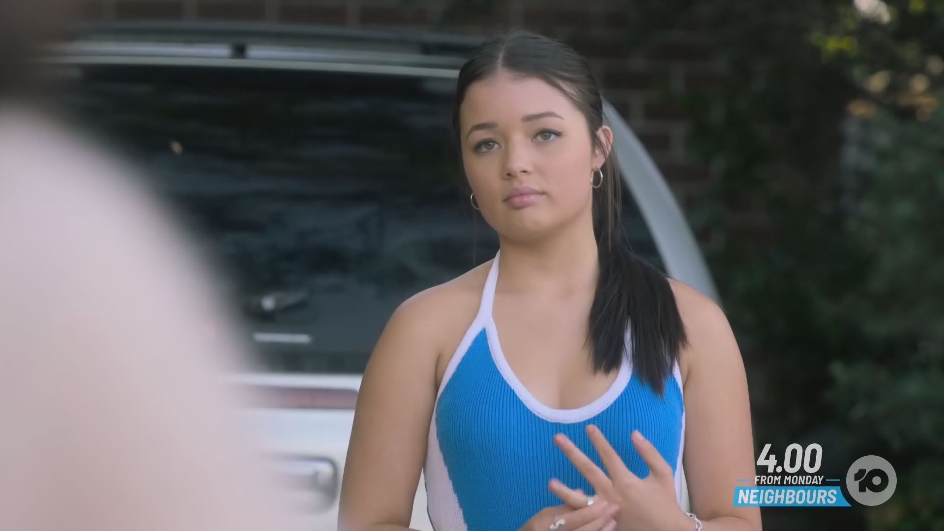 Neighbours - Thursday 5 Oct 2023 - it's not really showing up in these caps but in the video there might be a hint of a nipple bar on the right boob