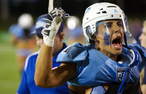 It's missing a hyphen...it should be the Leg-ends Football league, it's all about what's at the end of their legs...