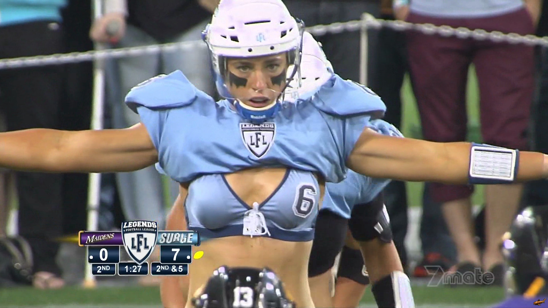 I'm just thinking. Lucy Bayet and Robin Lawley would play line. Brooke Evers and Tash Collins would play as snappy cornerbacks. Bakker and Dominique Le Toullec as wide receivers. Tonisson as a linebacker. I need more time for positions for the others.