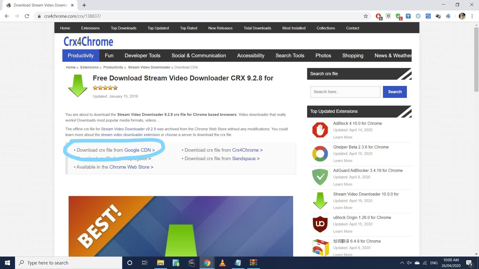https://www.crx4chrome.com/crx/138837/ and download "Stream Video Downloader' ( you want version 9.2.8 )... Click on "Download crx file from Google CDN" and it will give you a save link ( extension_9_2_8_0.crx ) - this is a 32.8mb file