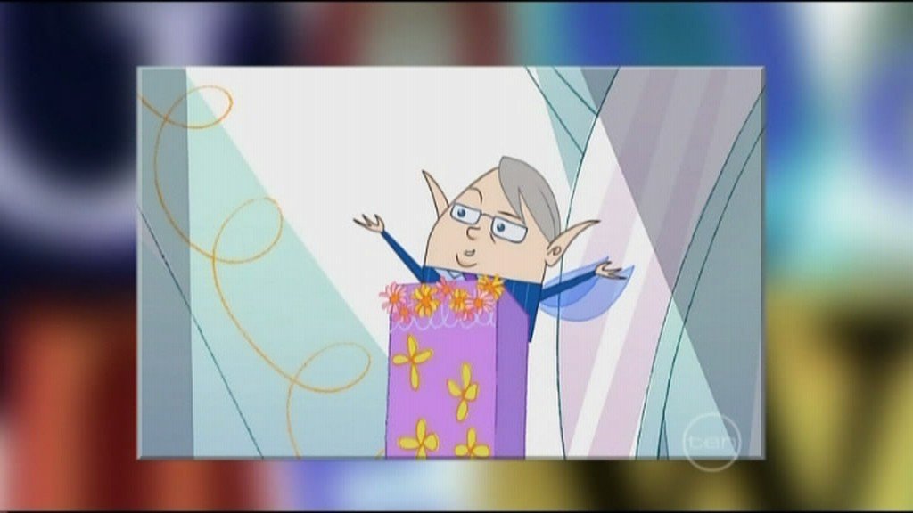 A $10 million Australian animated series based on the books by Wendy Harmer. Here we see the title character and the Prime Minister of Fairyland, who looks quite like another Prime Minister....