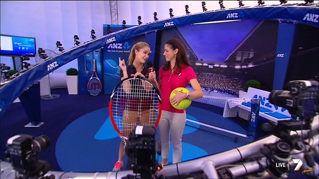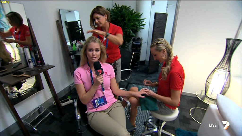 Lads you will be drooling over what she did today during the tennis coverage at around 3:50. she was completely wet after standing in a fountain.
