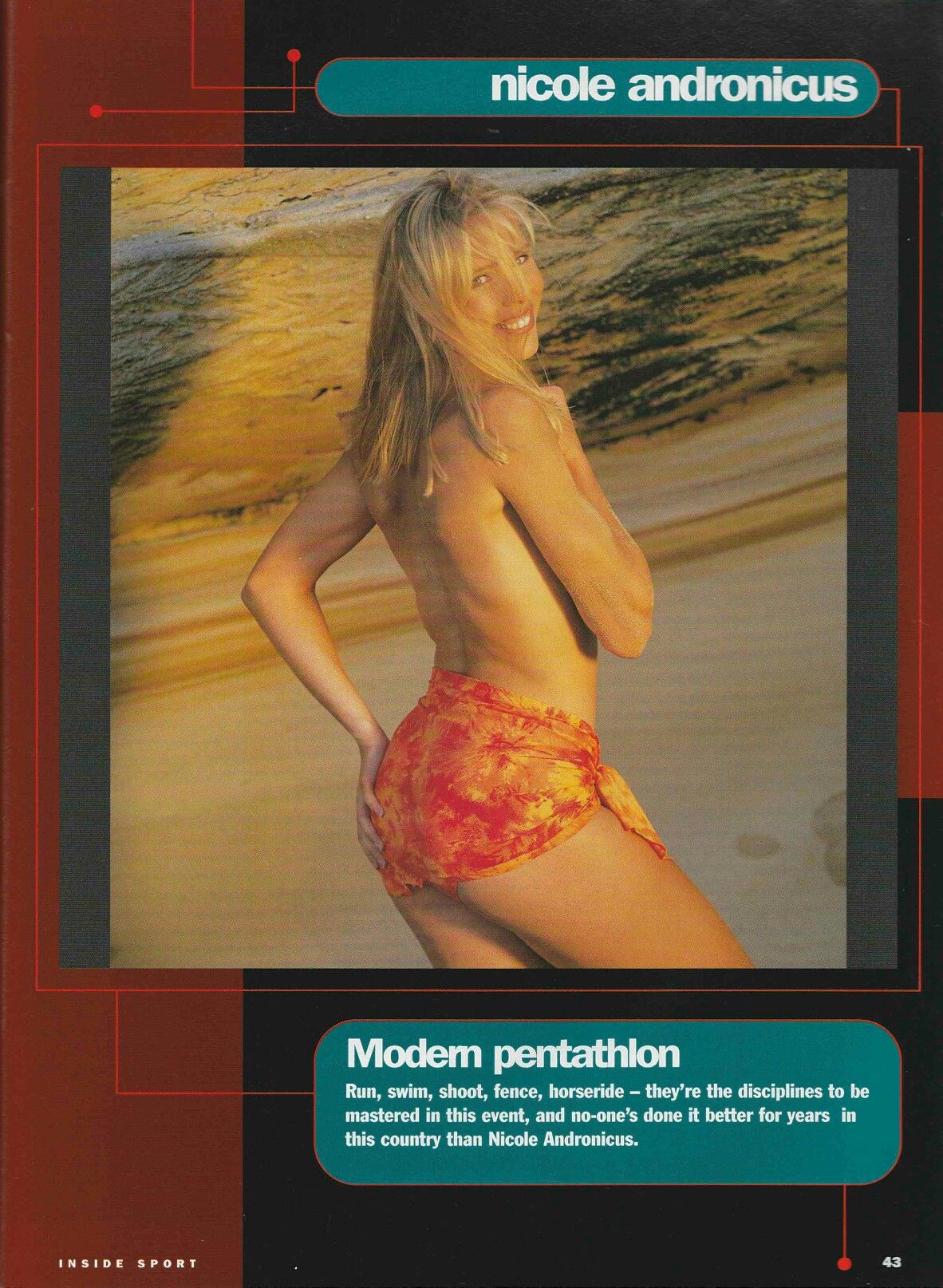 Alright. I won't get so hung up about it next time Anyway, back to work. November 1995. Amy. Pic 1&2. Random pics from a Ironman article. Pic 14. Retro photo of the Sydney Swanettes doing their best work.
