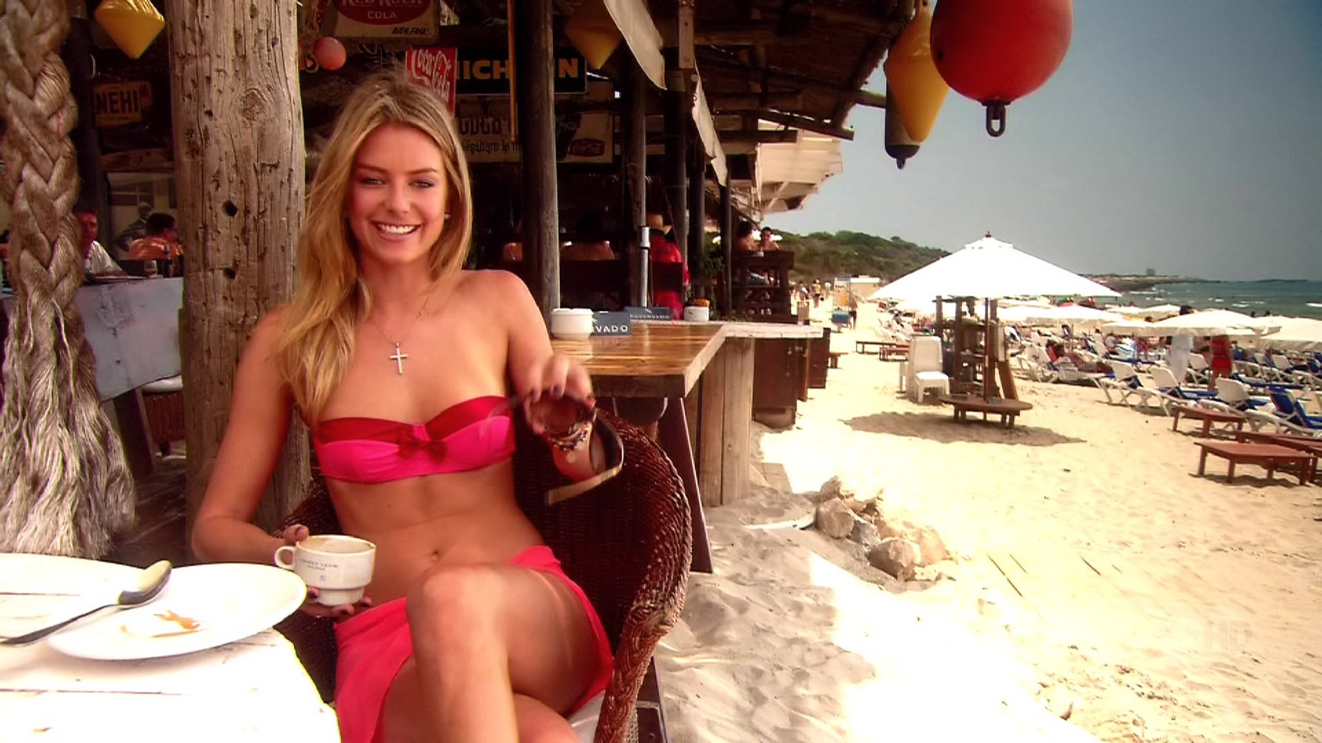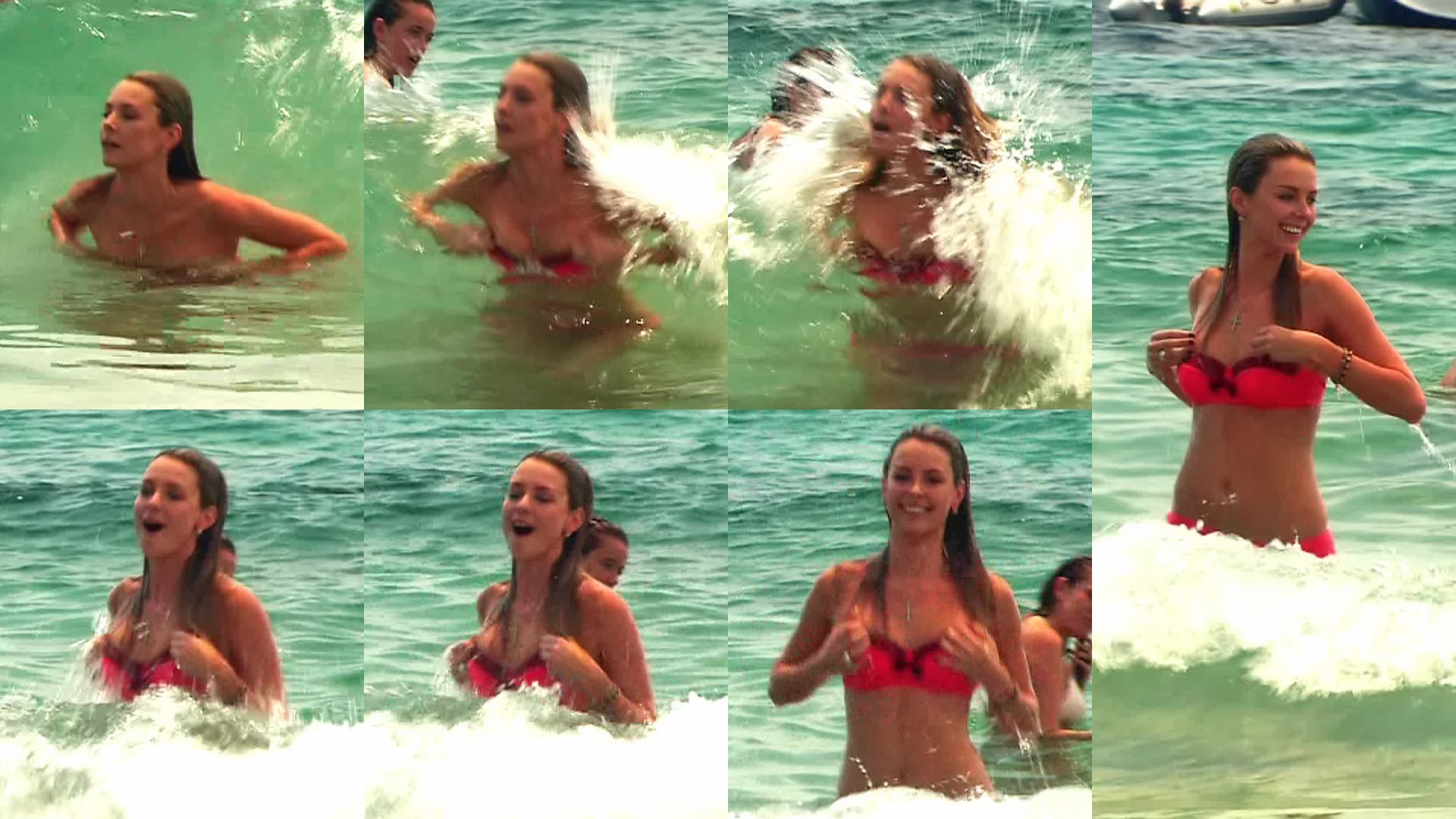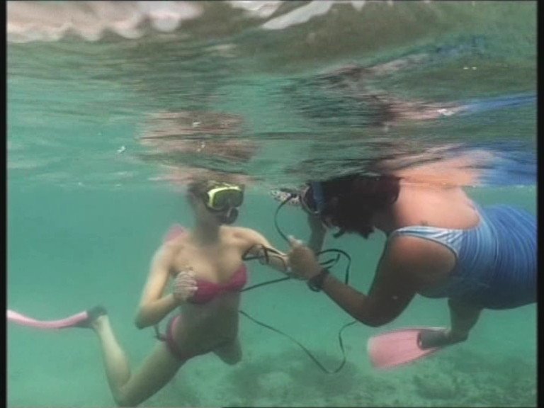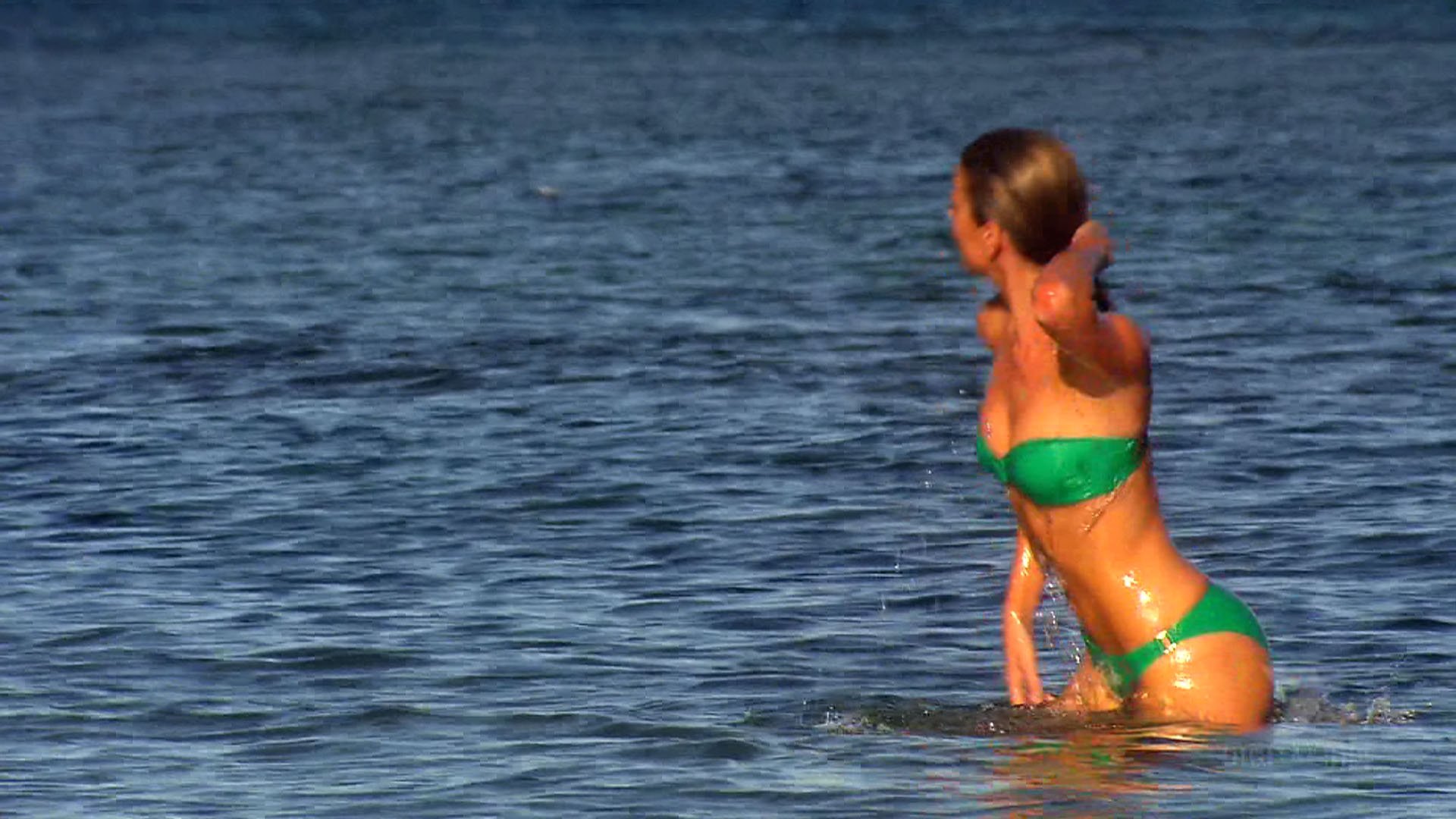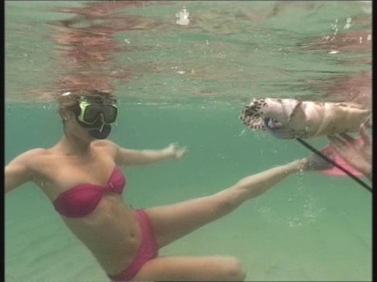 Okay these are in Ibitha (however that's spelt) Jenn in various, plus bikini then at one stage has a wave wash over her and nearly takes her top off.