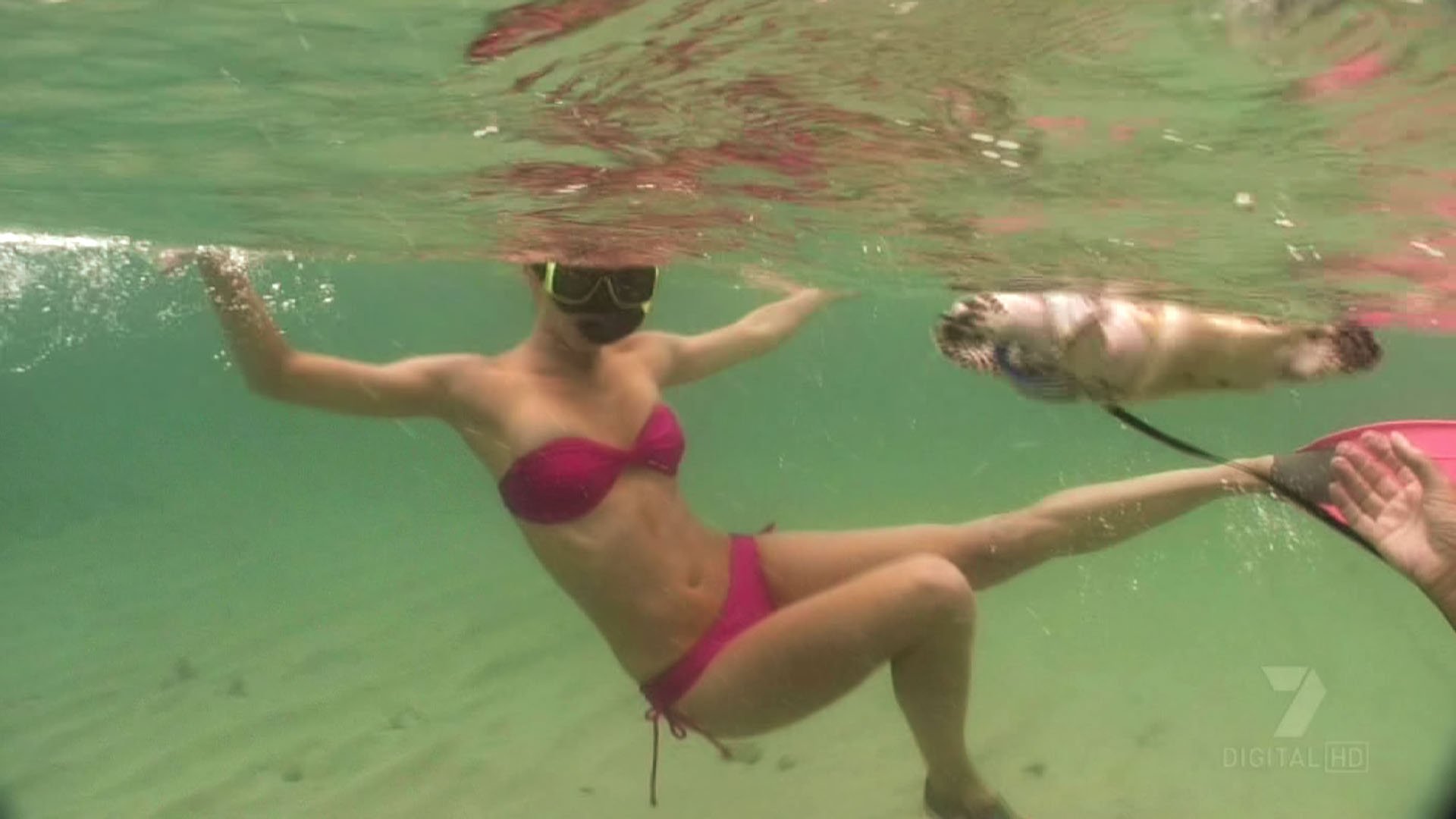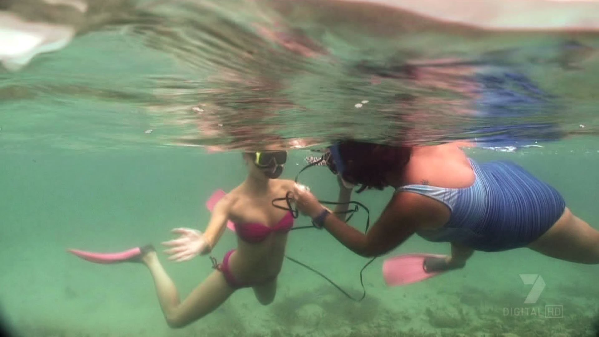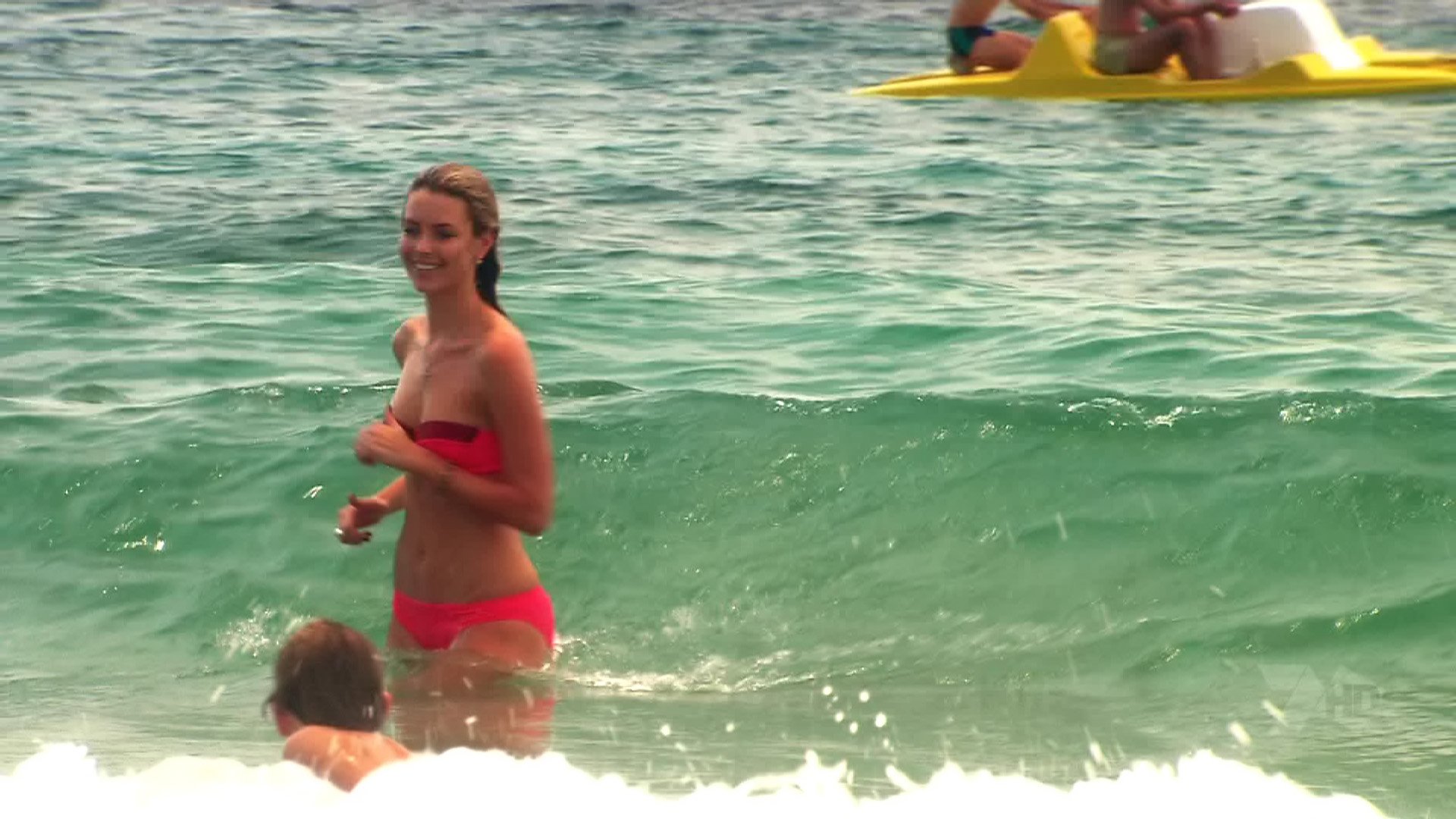 Okay these are in Ibitha (however that's spelt) Jenn in various, plus bikini then at one stage has a wave wash over her and nearly takes her top off.