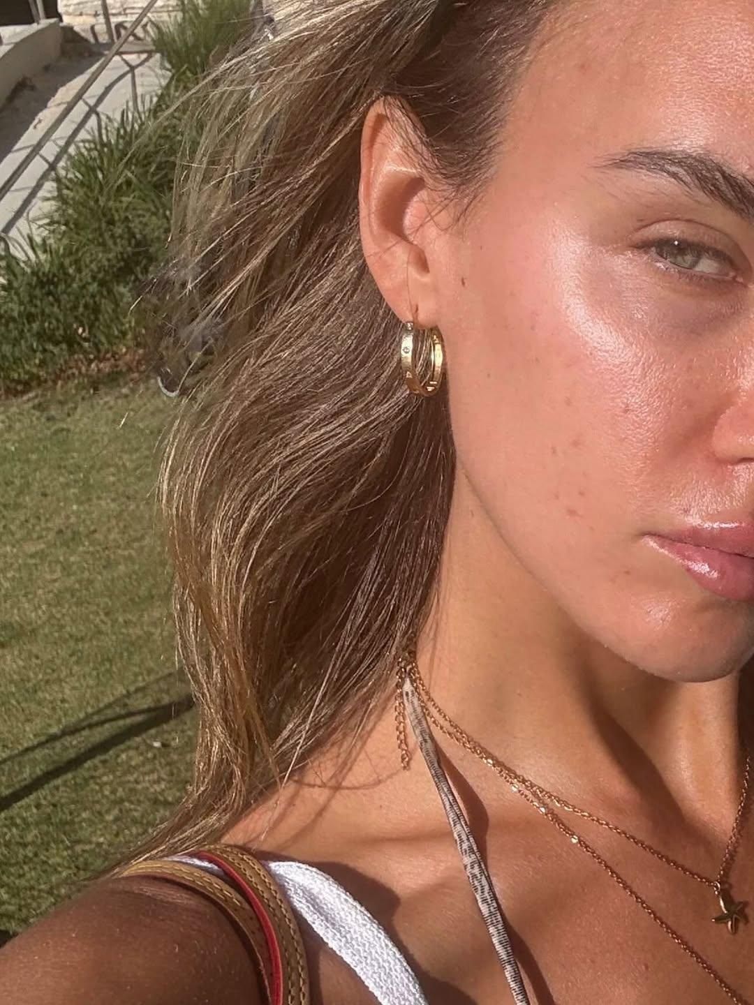 The sun adored her, wrapping her in its golden warmth as if afraid to let her go. Every curve of light traced her like a whispered confession, turning bronze into poetry. Her skin shimmered like soft fire, her breath in rhythm with the ocean’s hush. The delicate glint of her jewelry caught the breeze — quiet promises of beauty too effortless to be taught. With her hand resting gently over her lips, she seemed lost in a daydream, half sunlight, half secret — the kind of moment you could fall in love with and never return from.