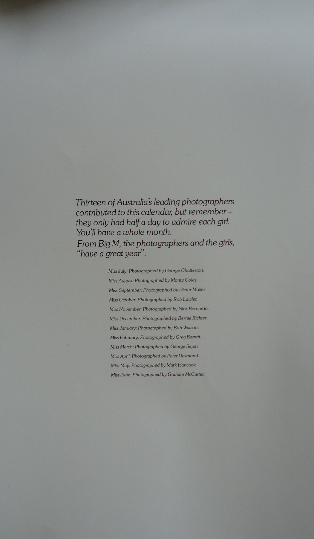 Great for selling milk in the early 80's. This was the first calendar that came out in 1979 featuring Anne Cameron as Miss April and Fiona O'malley as Miss June