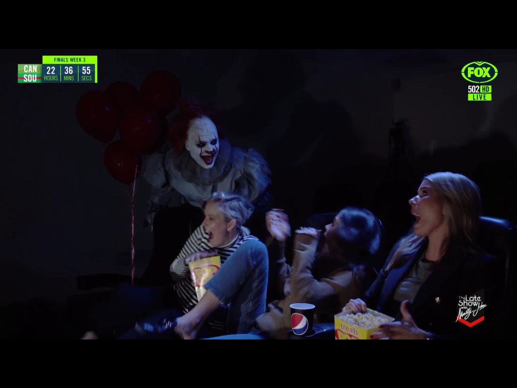 Jess during a Scare skit on The Late Show With Matty Johns Dam she's got a massive pair of Jubes on her lol
