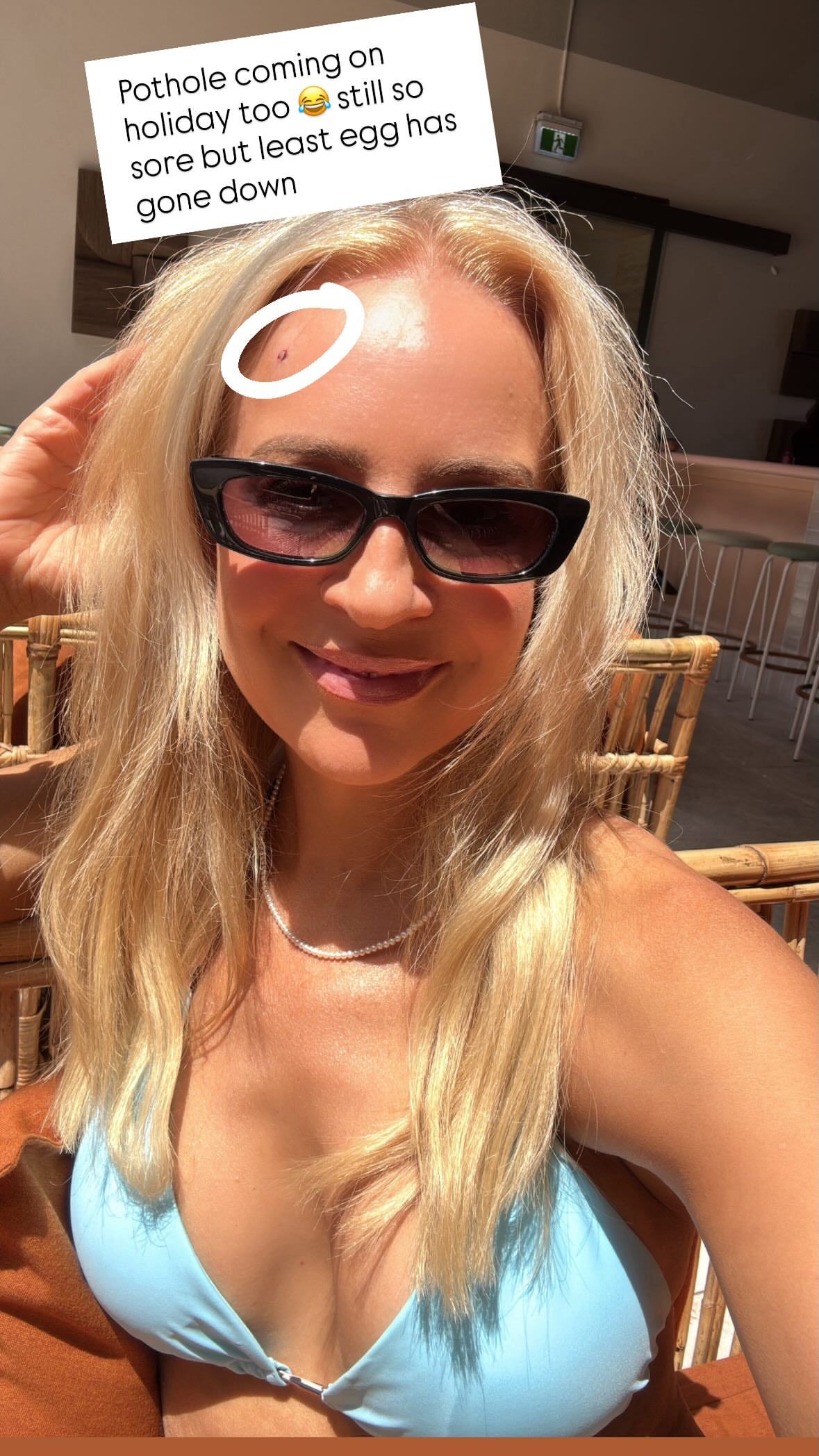 She seems to have a sound strategy to divert attention from the eggs and potholes.
