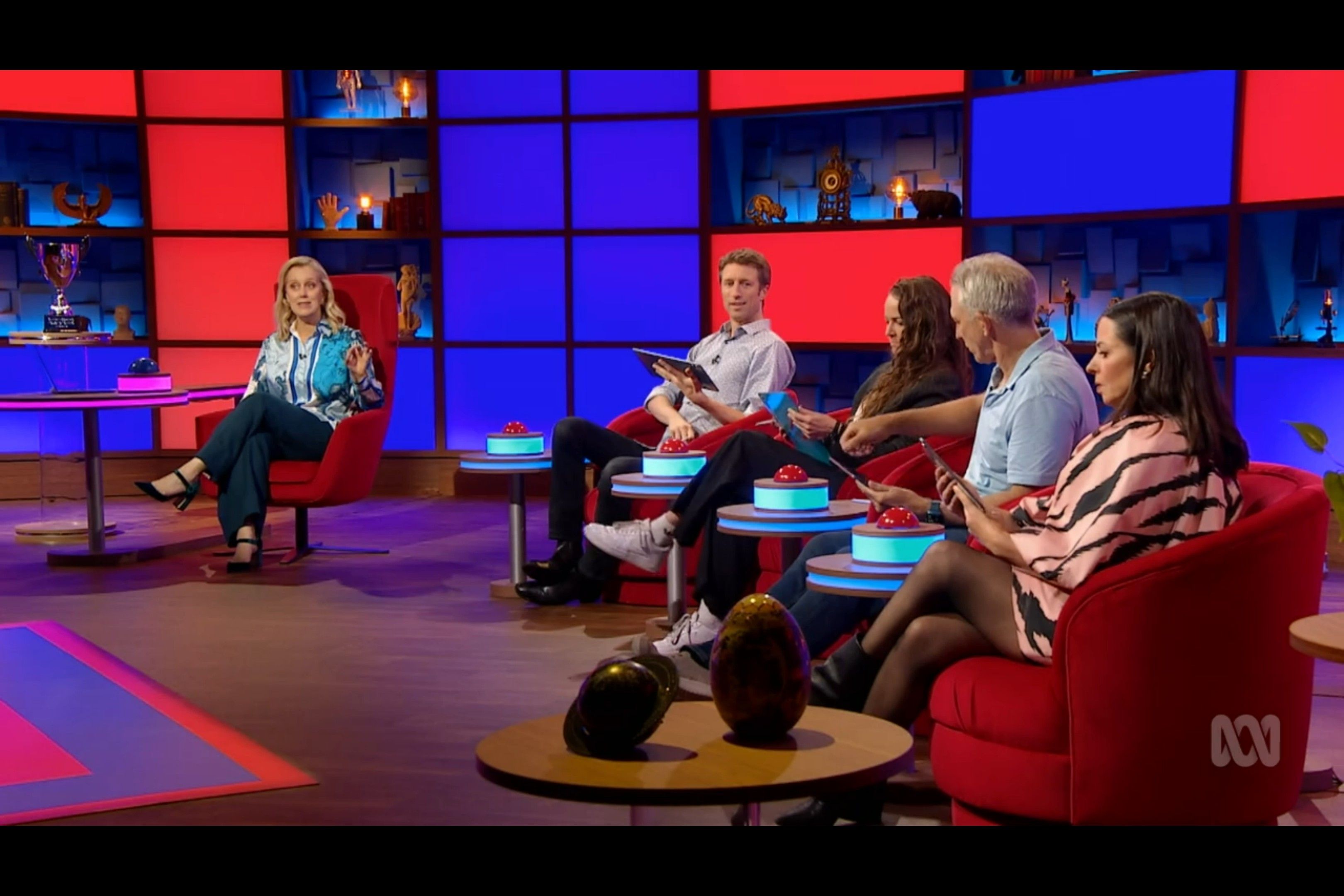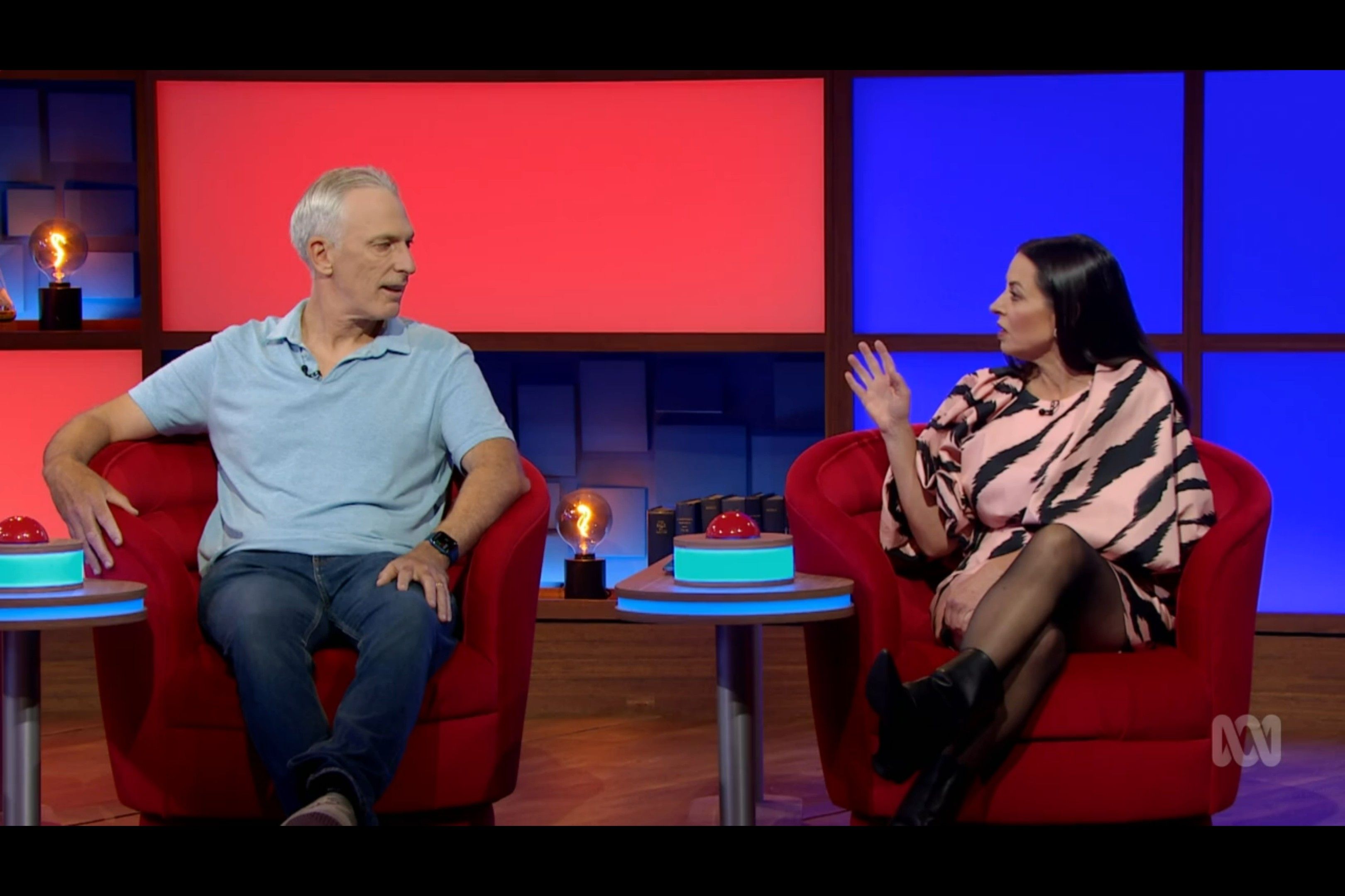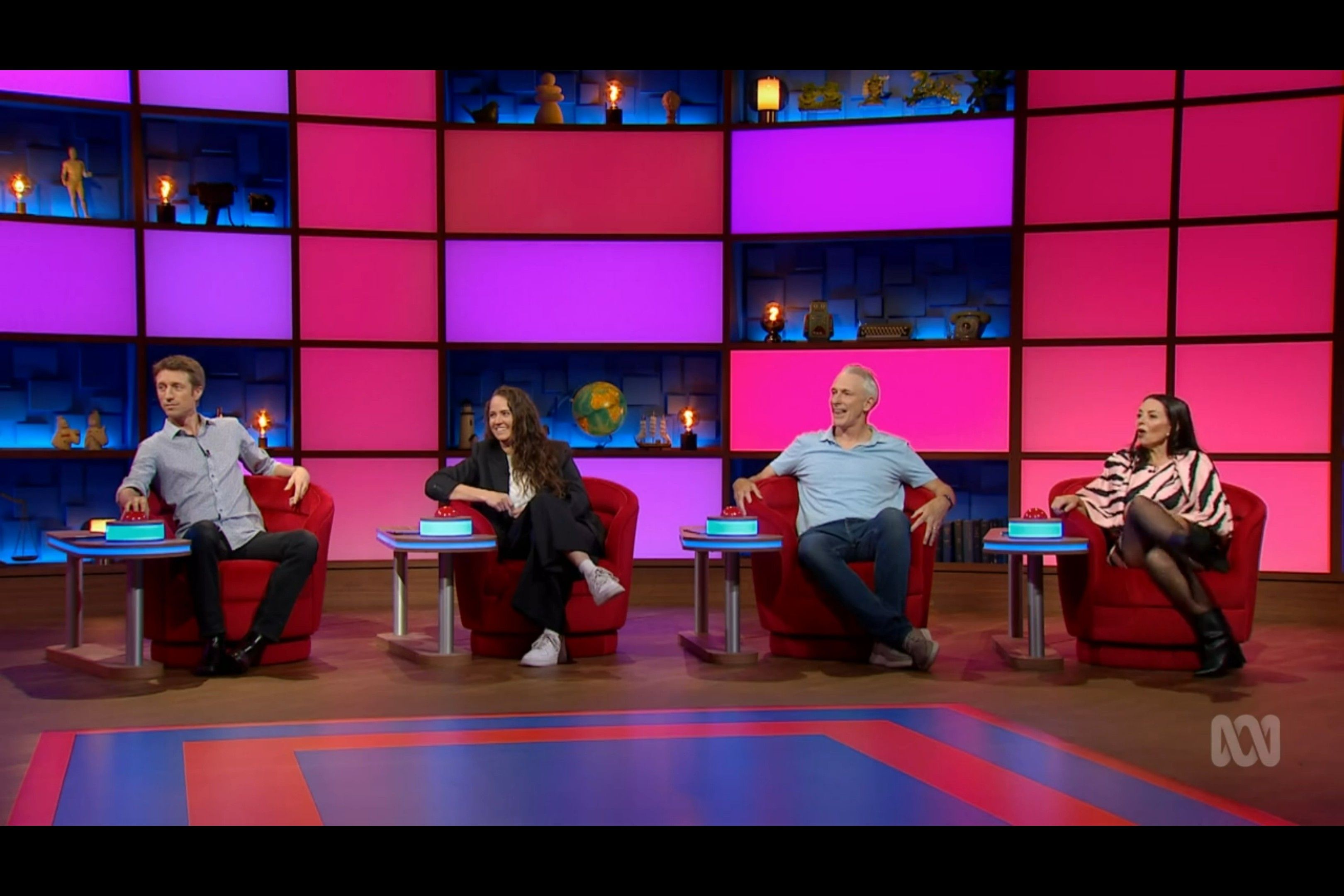 Myf showing a bit of thigh on an ABC game show hosted by Claire Hooper I came across.