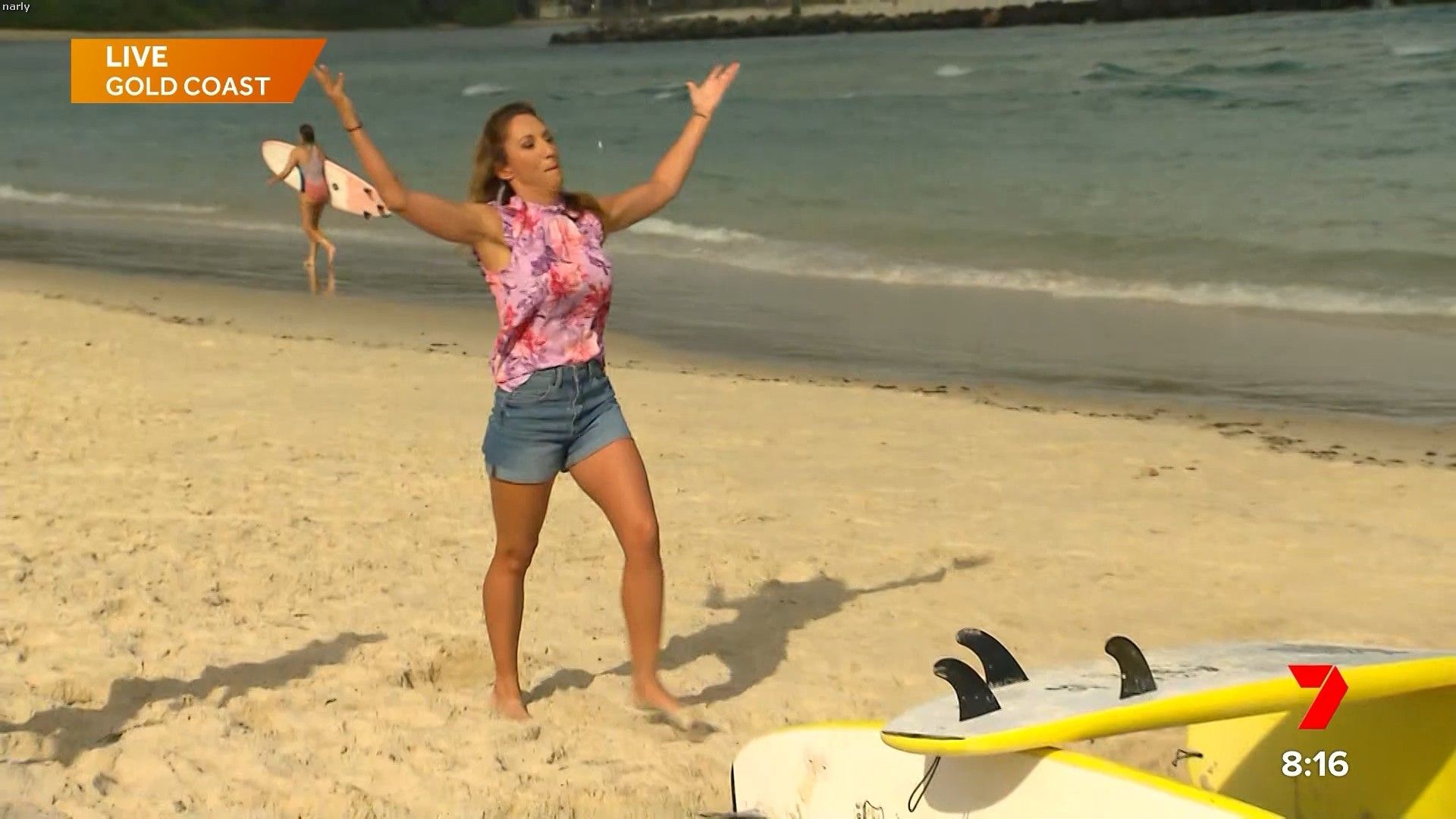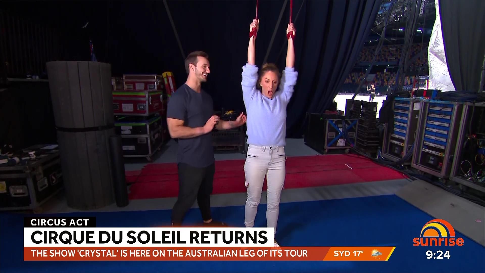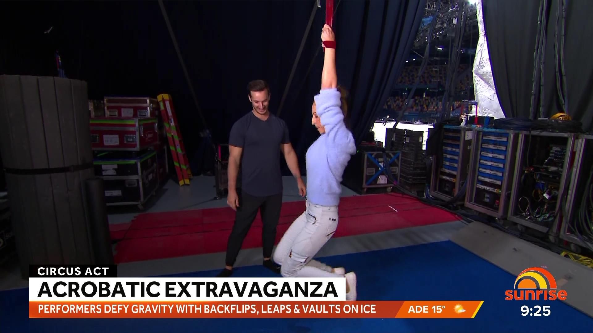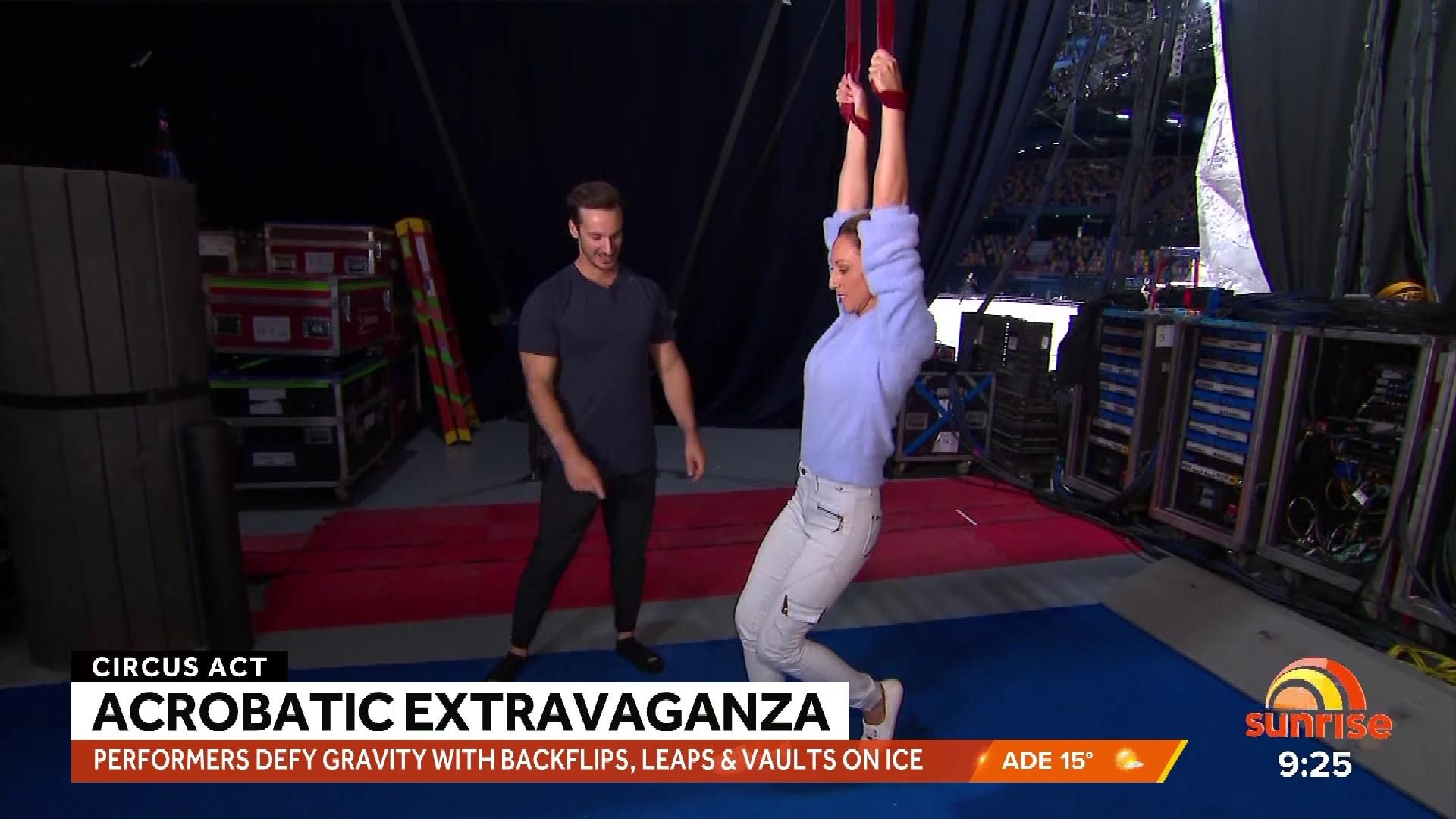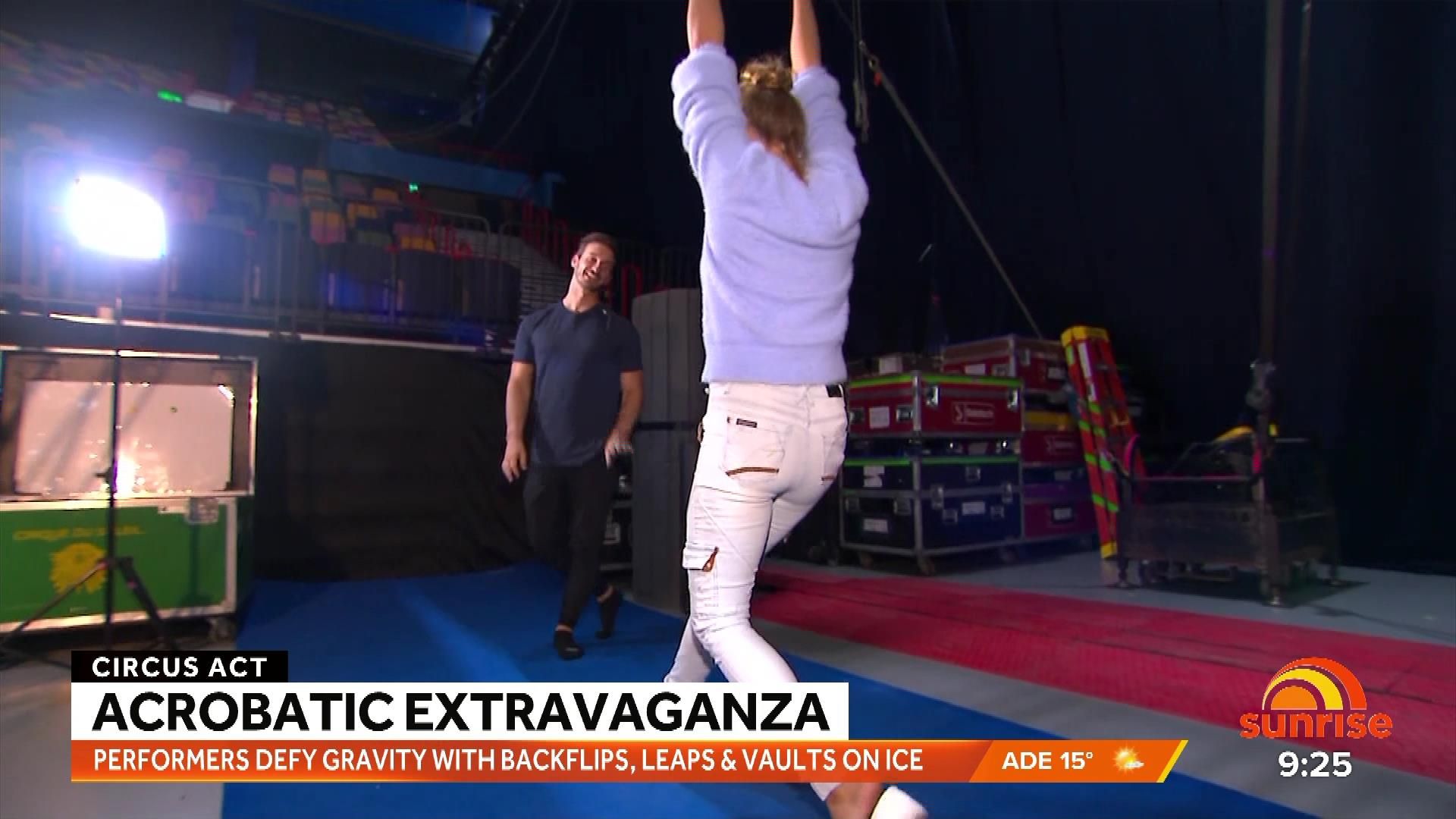 Caps from Tamra's acrobat sequence on Weekend Sunrise 23 July 2023. Quality isn't the best but better than nothing.
