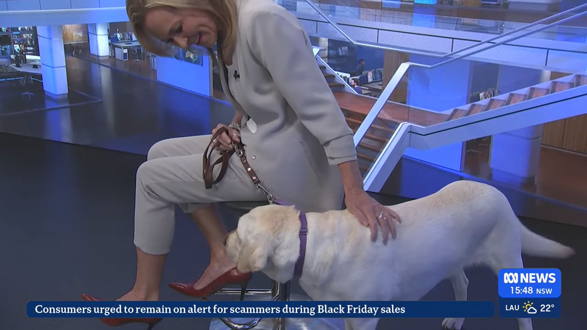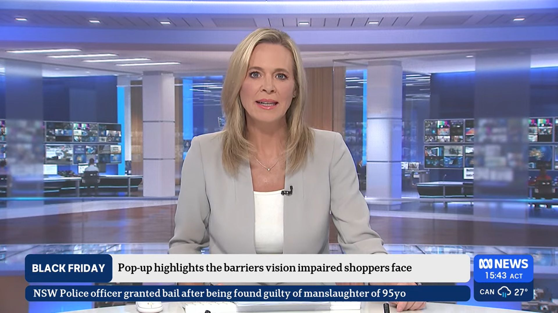 Doing news at noon at approximately 12:01 to 12:10 standing in heels front and rear very nice if anyone is capping