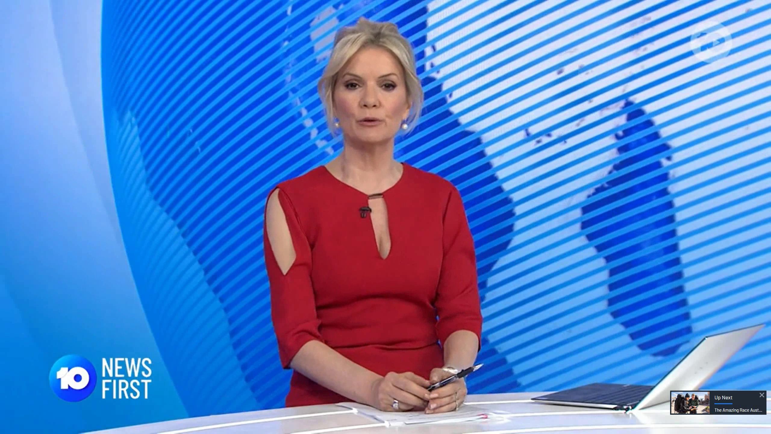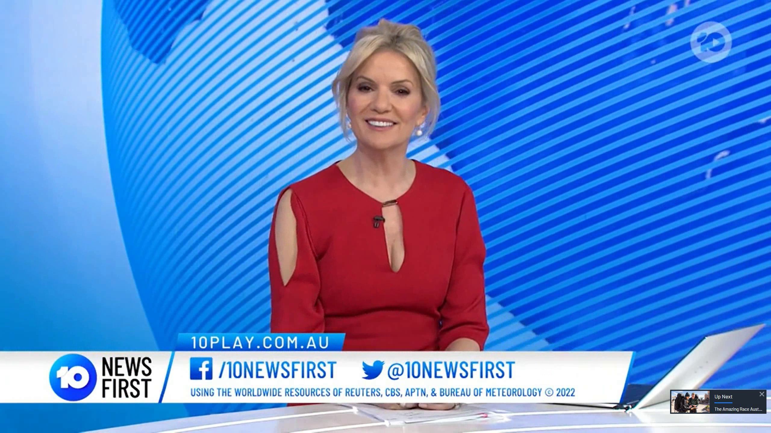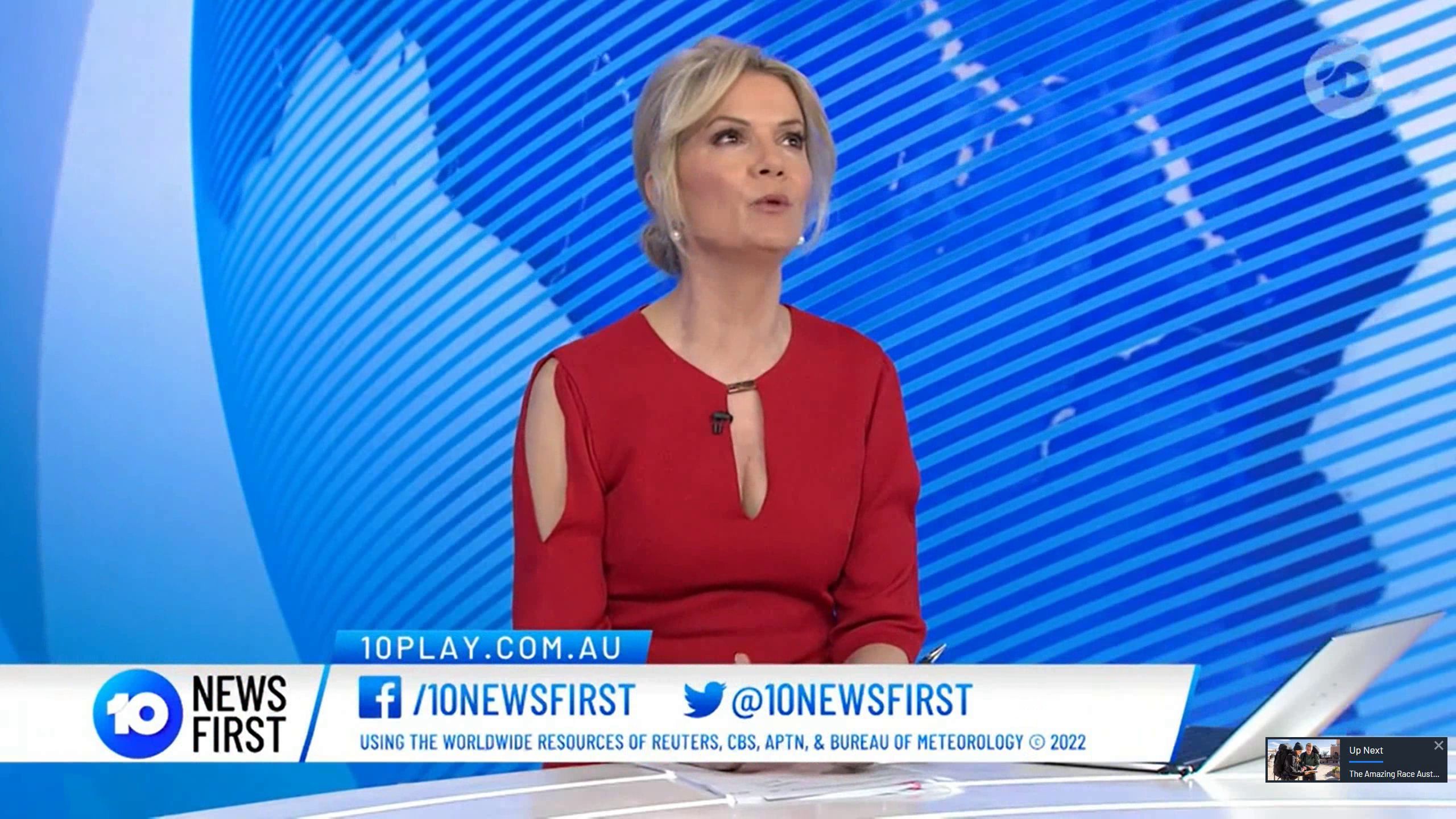 Anyone watching the 5 O'clock news, Sandra is showing cleavage in Red.