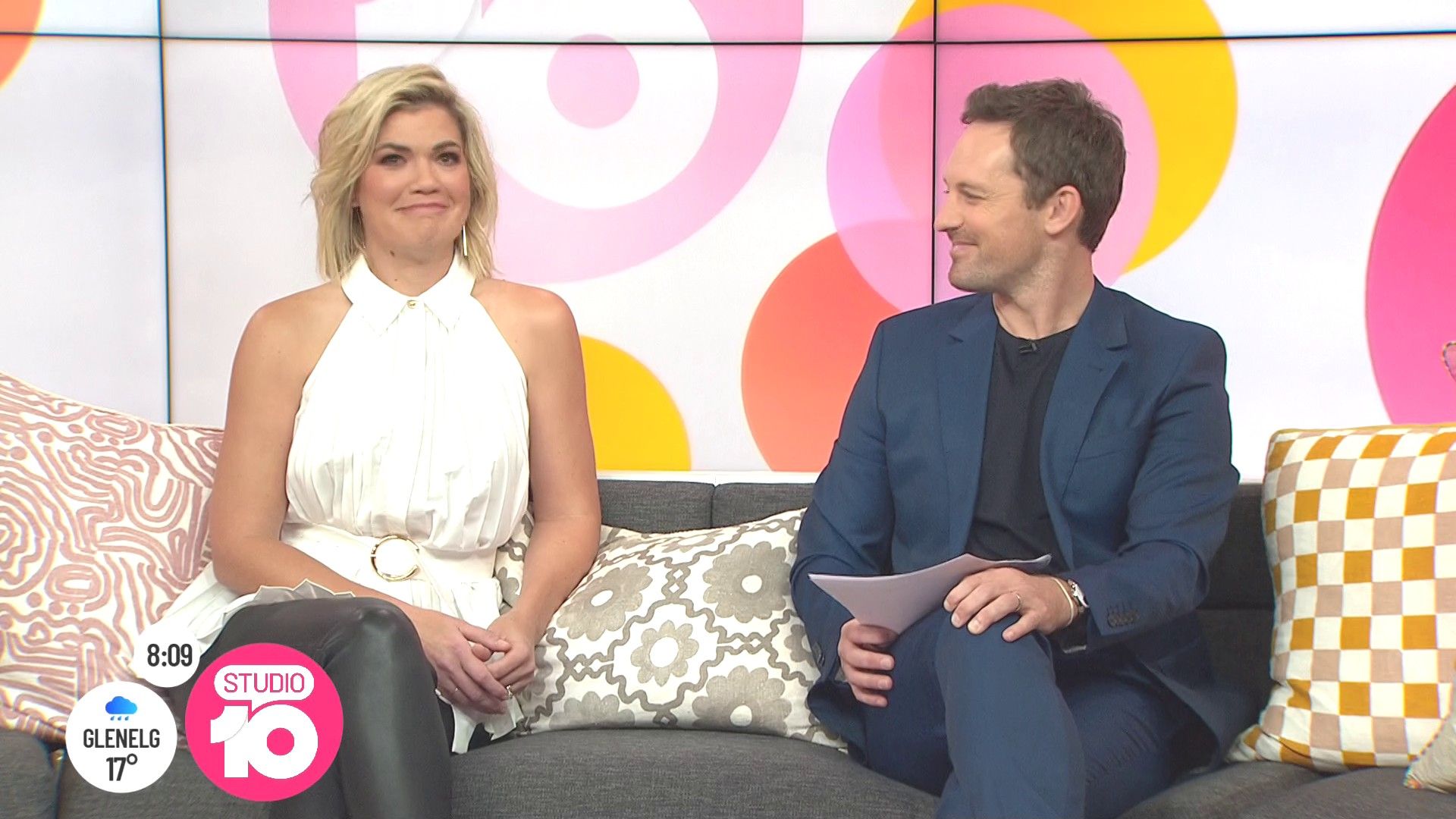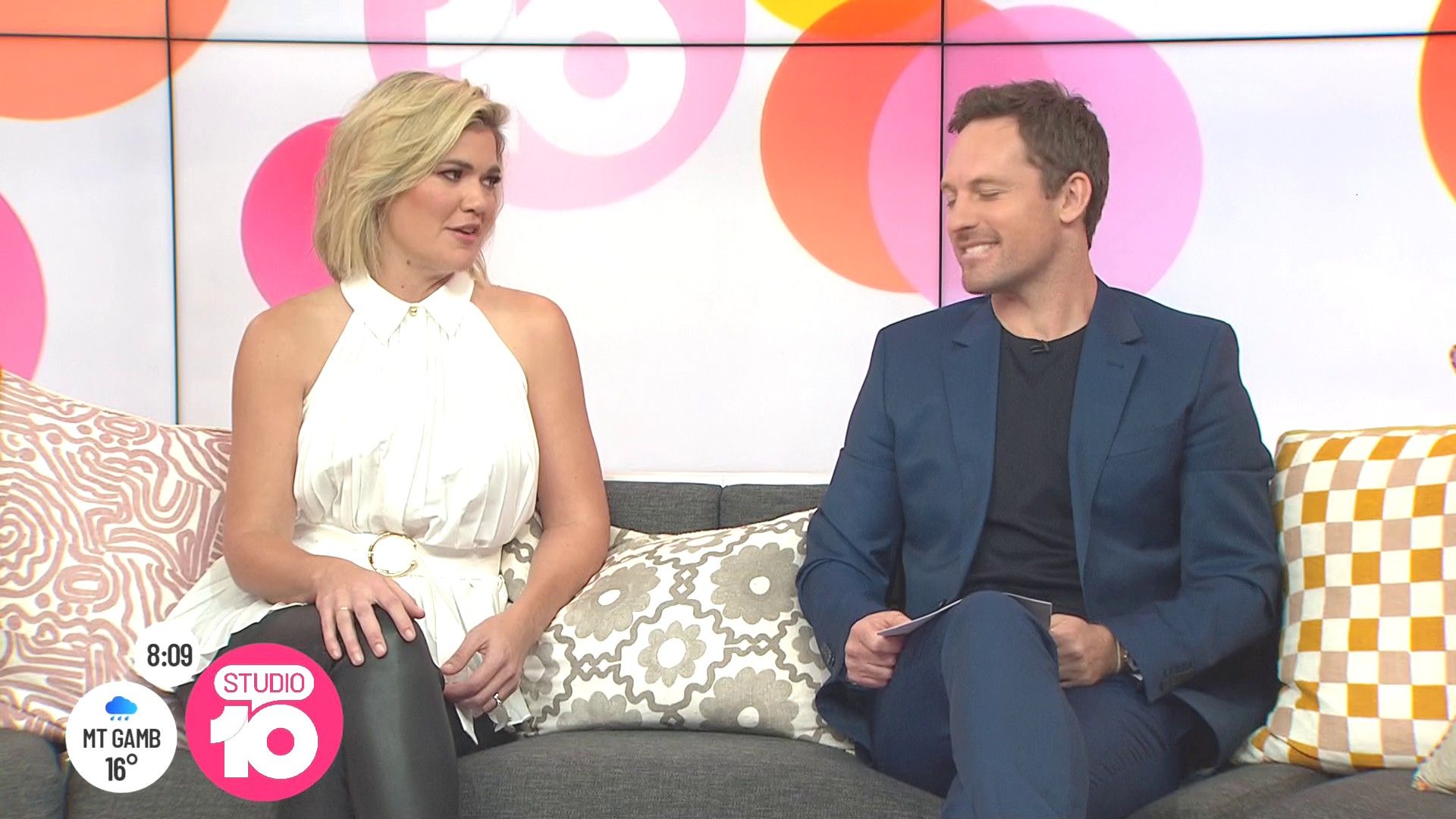 Zygon wrote: very nice, sexy leg action Angela too I'm sure ch10 put those logos in the way on purpose  narly  I missed the show today but Angela never fails in the leg action but rare from Sarah these days.