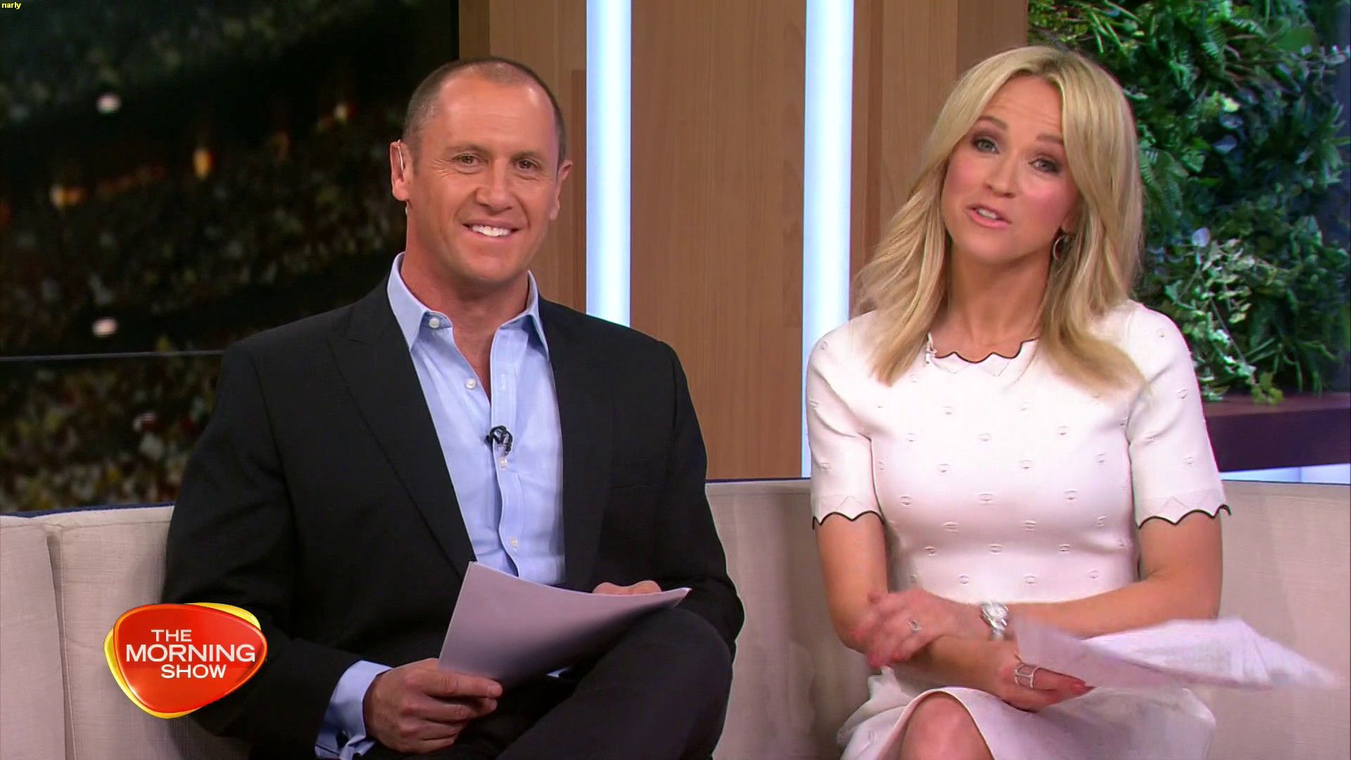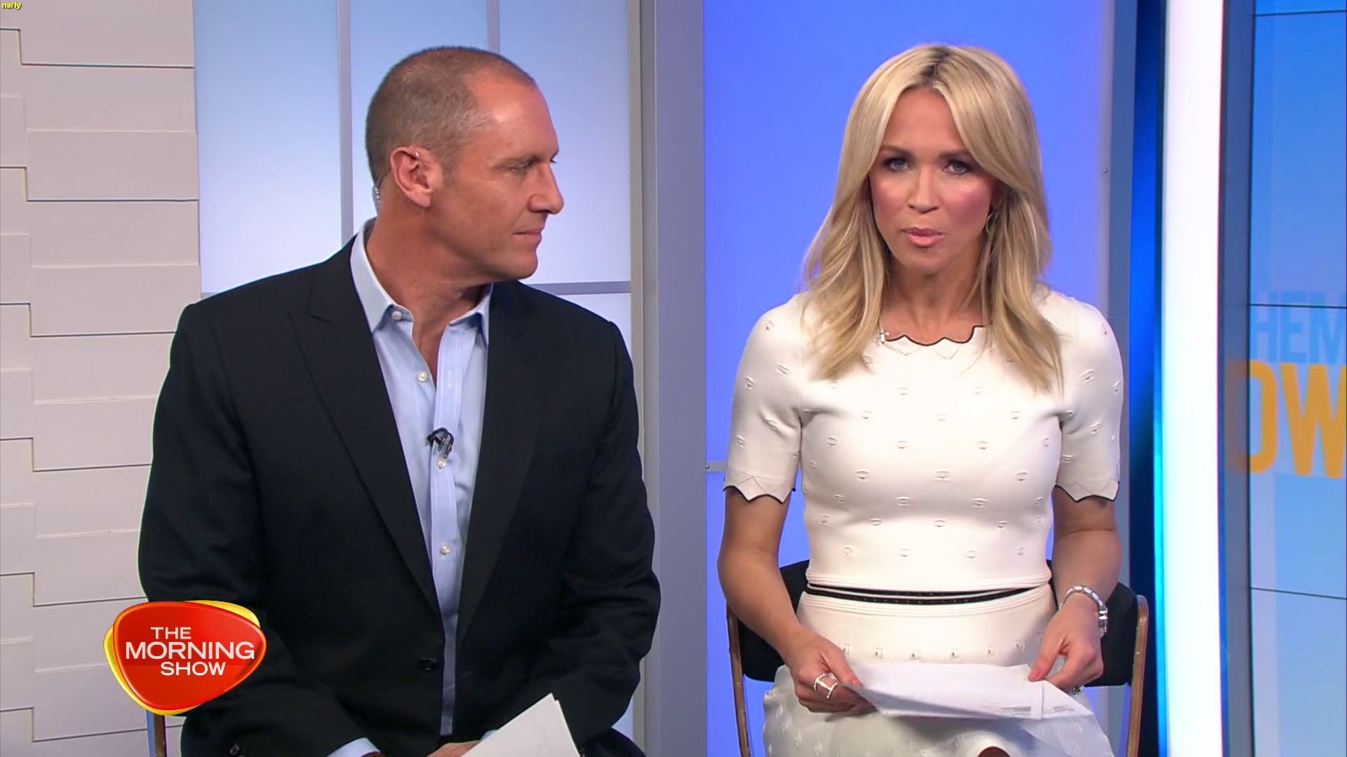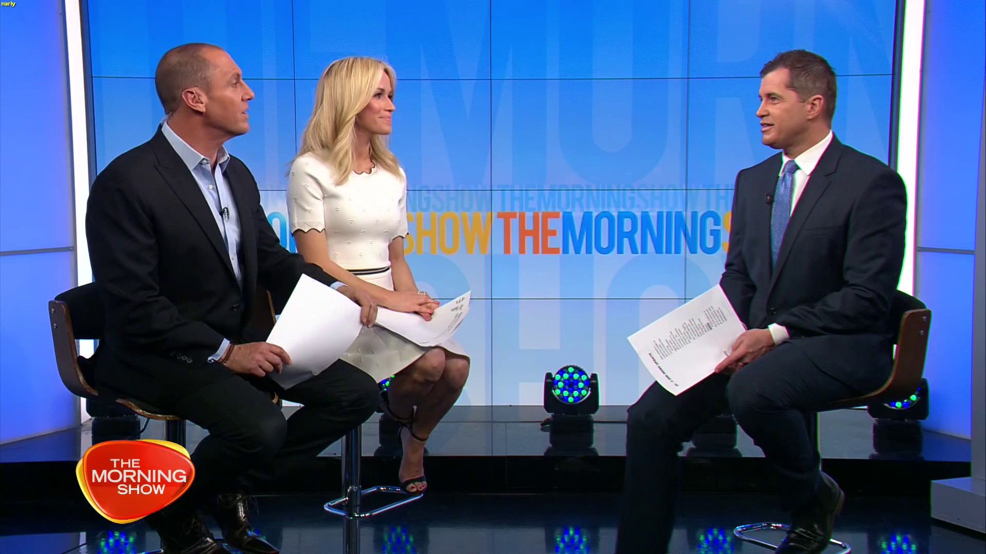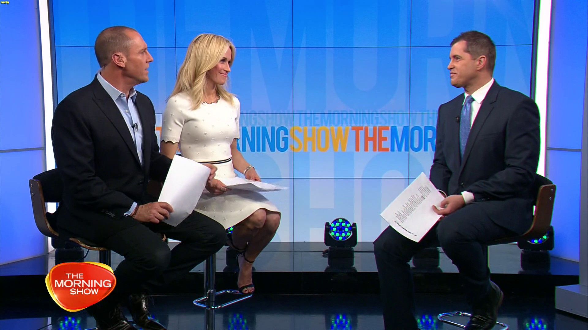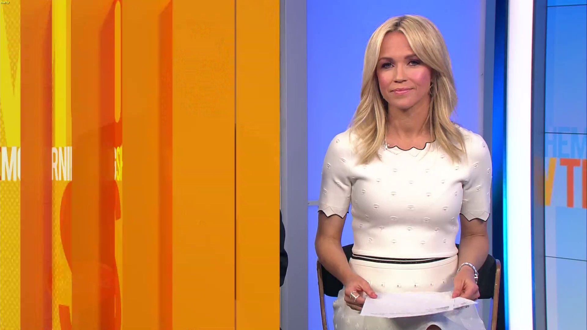 Today might be her best look yet. White dress, black heels. Great legs and feet. Super cute smile.