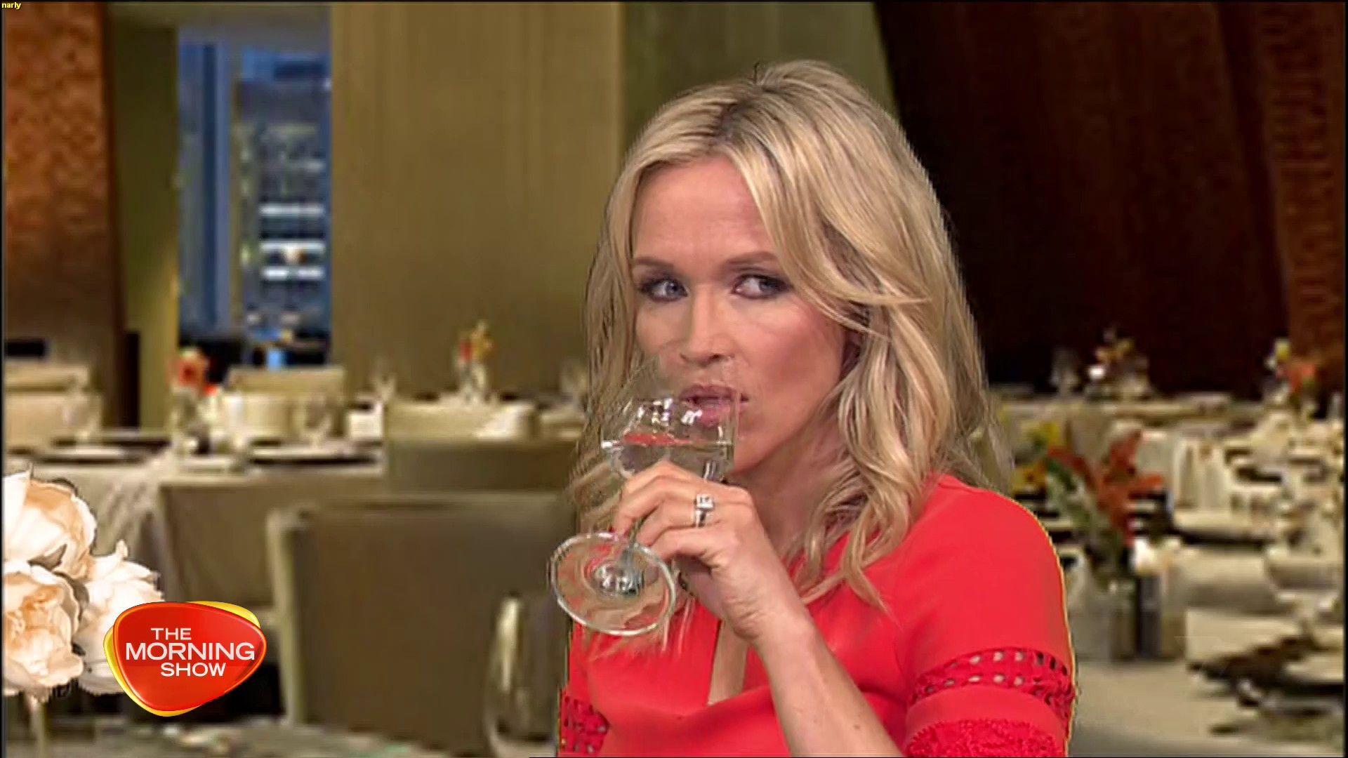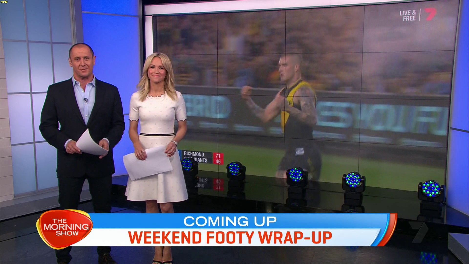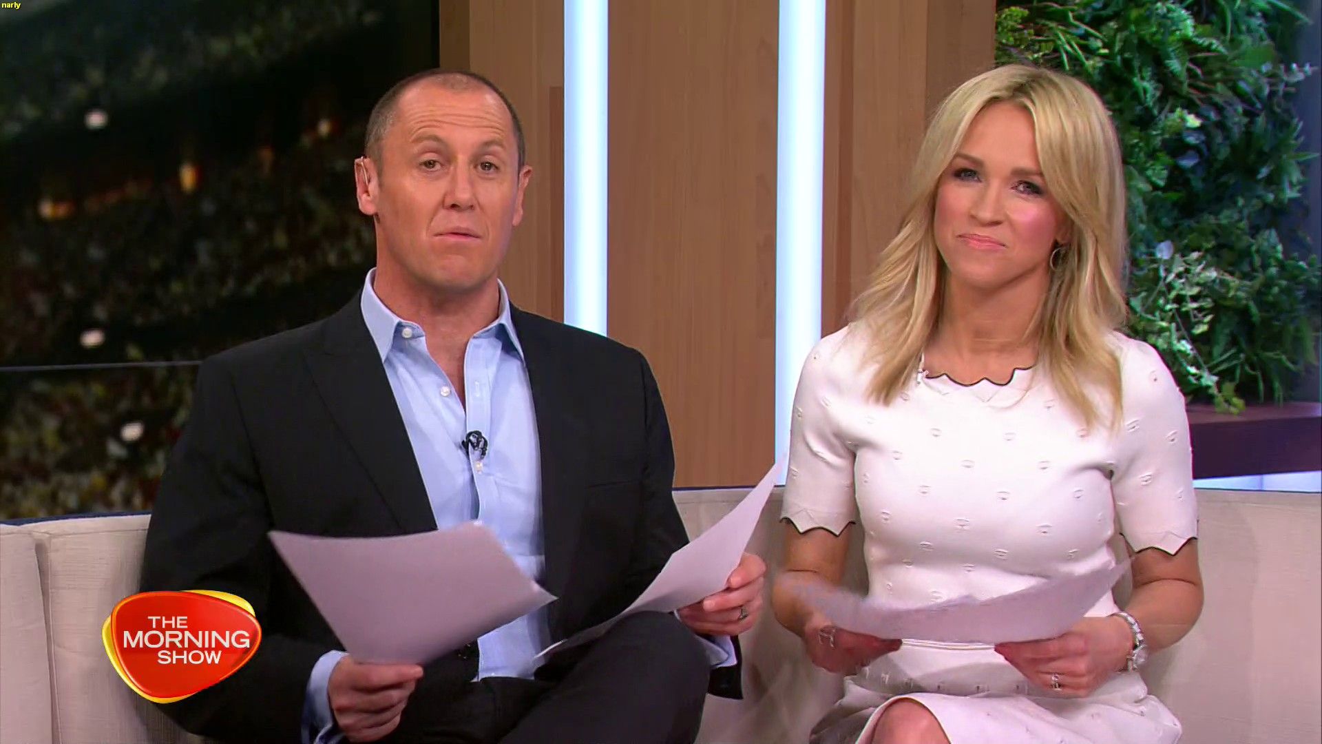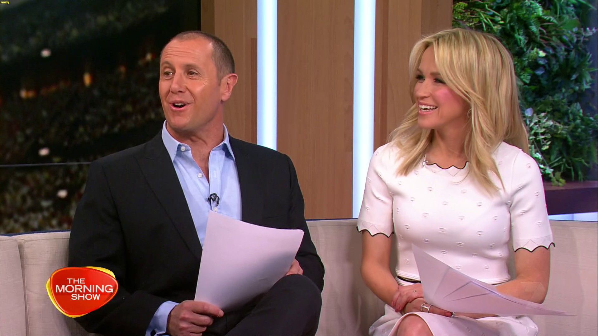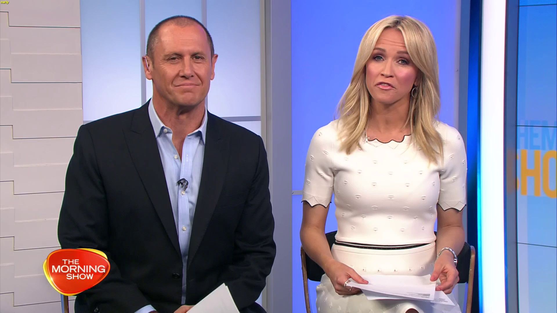 Today might be her best look yet. White dress, black heels. Great legs and feet. Super cute smile.