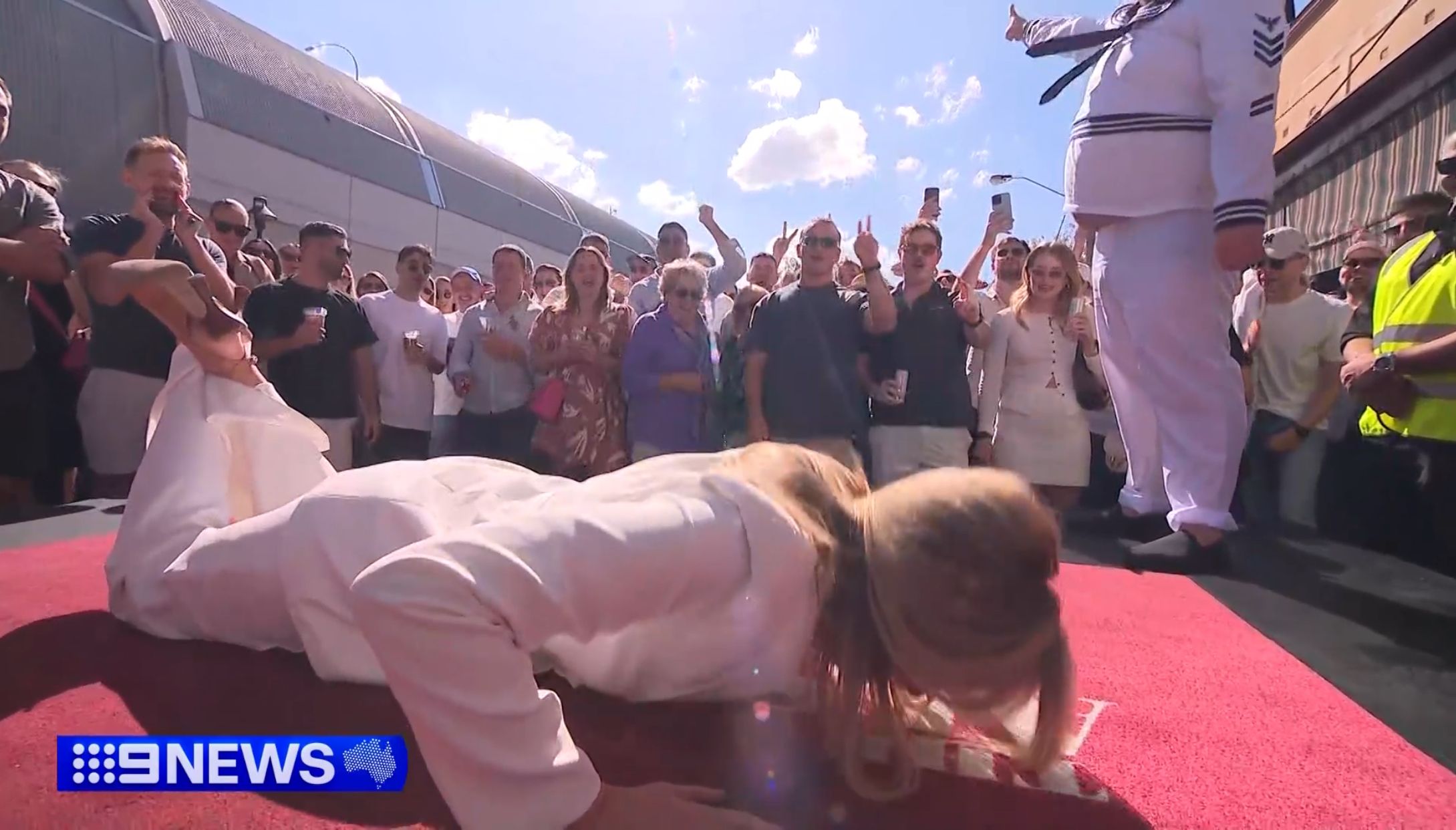 Liz (Lizzie) Daniels Push ups for 3 foul tosses at Two Up
