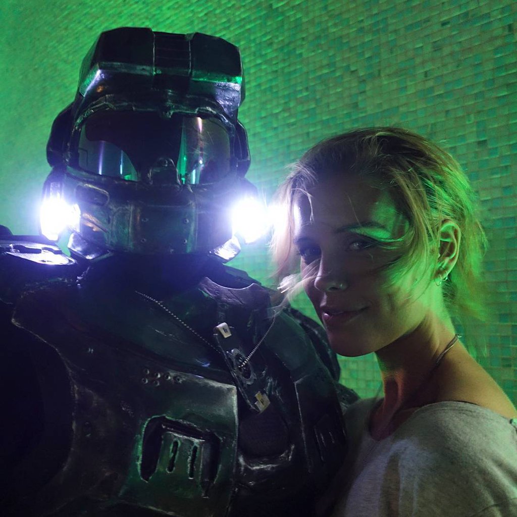 Quote: Master Chief insisted on a photo with @hexsteph at the #halo5 launch party
