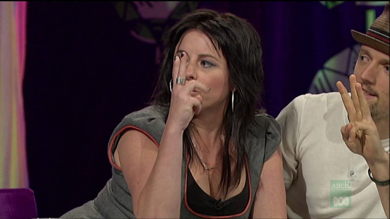 Look at how far away the buzzer is from Myf, I think her team mates are being devious and making her lean forward more. Gotta love it!