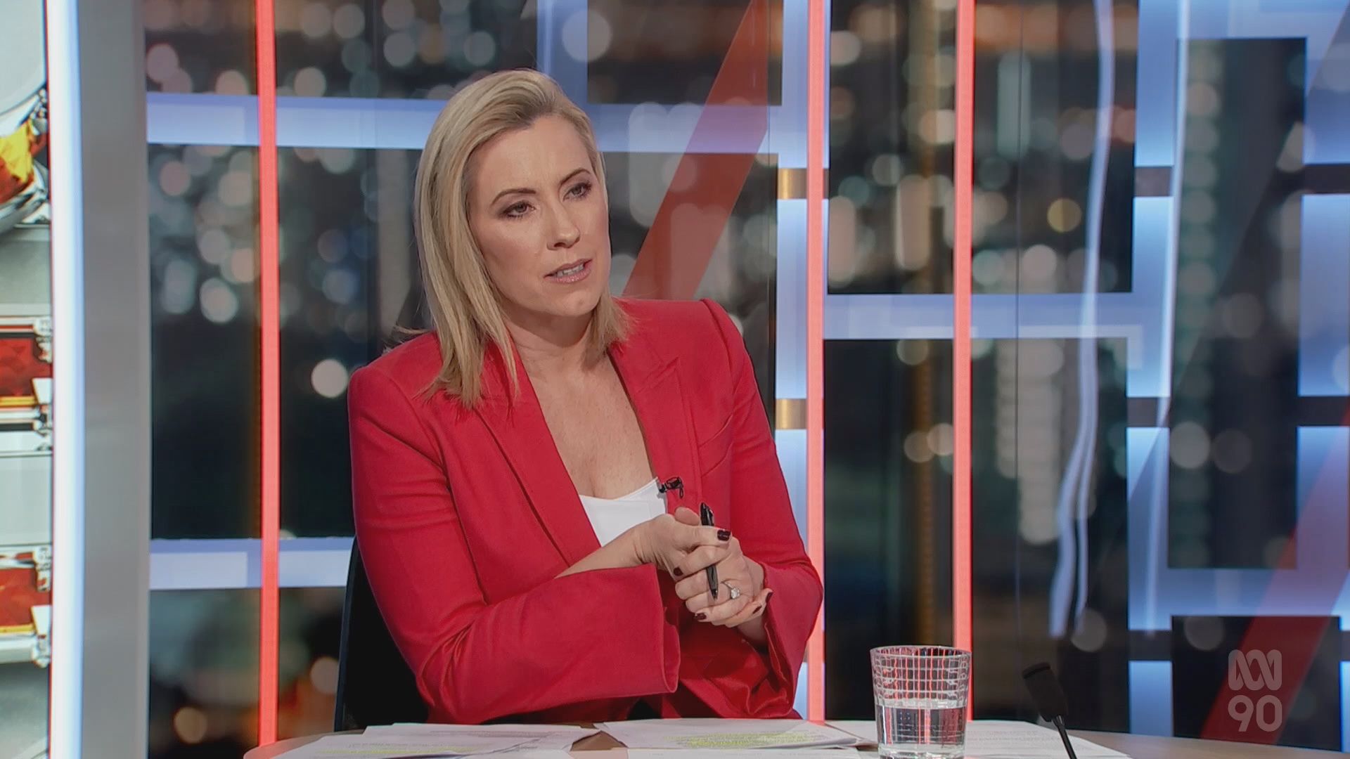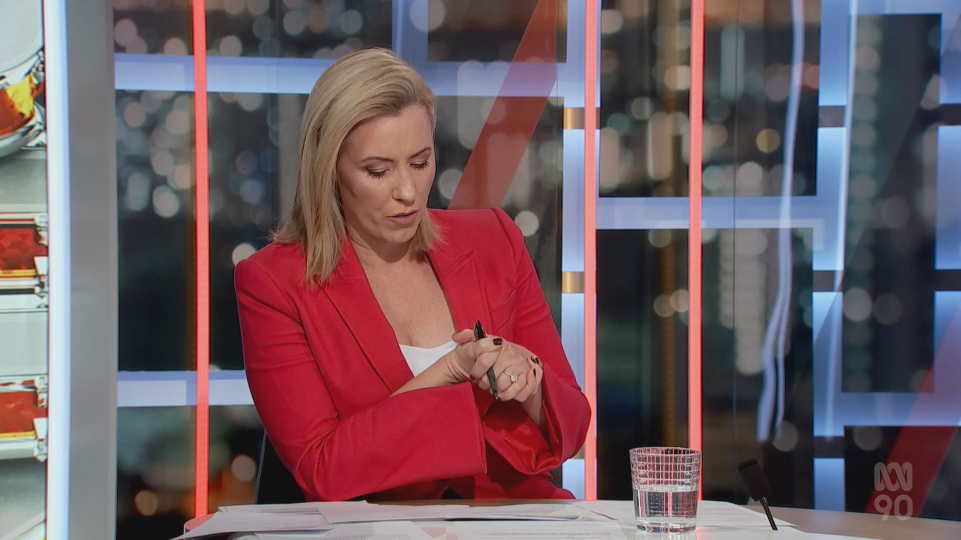 You are excelling yourself 20b. A smorgasbord of Kath on The Drum last week. Last Friday was an all girls show (well almost!), which made for a rollicking fun program. One aspect which often goes unnoticed with Kath is her impeccable manners (she never talks over guests).....a forgotten art when you view some presenters on this and other programs. In Friday's #8, Kath could pass for a Viking shield-maiden! She certainly has Nordic genes. Back on The Business on Monday (where the lighting has improved markedly) and Kath looks composed and stunningly beautiful, particularly in #5 and #8.
