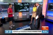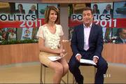 I've been admiring Nat for a long time - since when she was a newsreader on 11AM with Anne Fulwood and Andrew Dado. She doesn't wear skirts frequently, but when she does, they are usually ultra short (much shorter than say, Kylie Gillies would wear). And she definitely has the legs to wear them