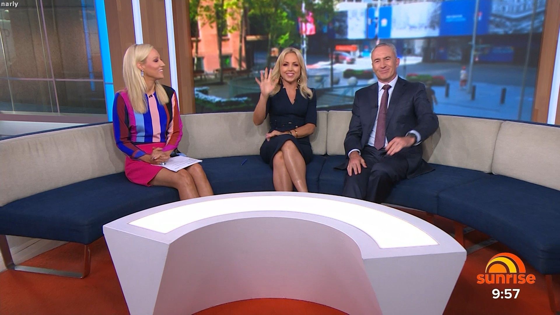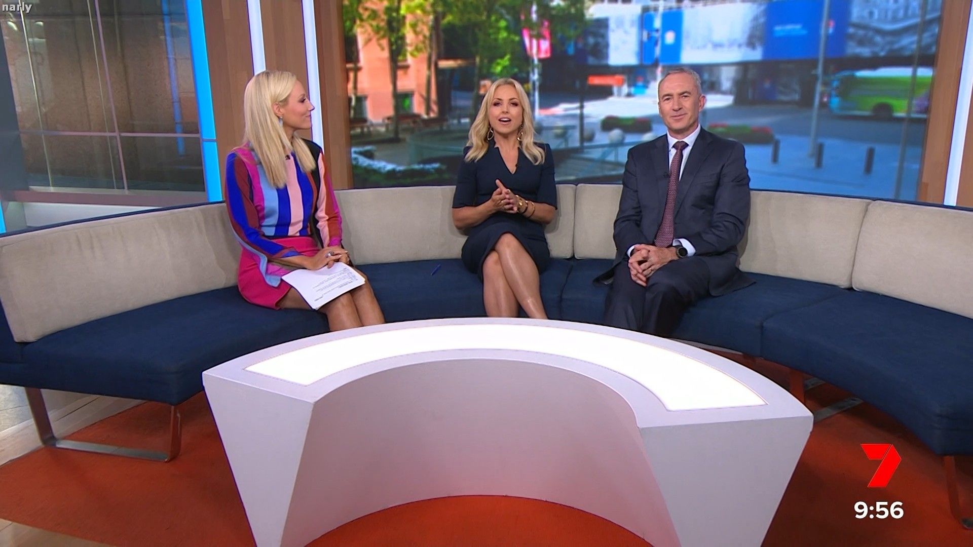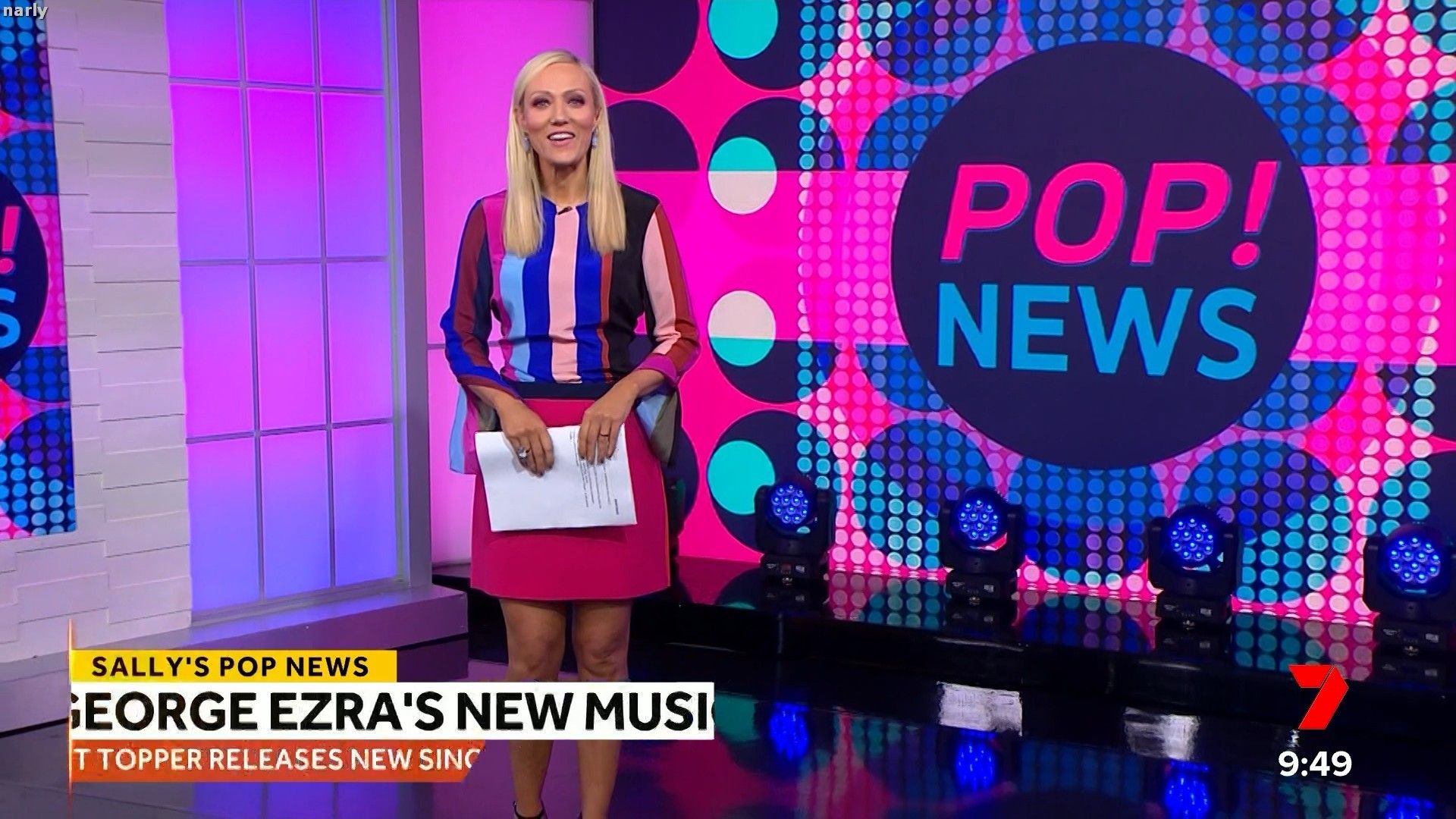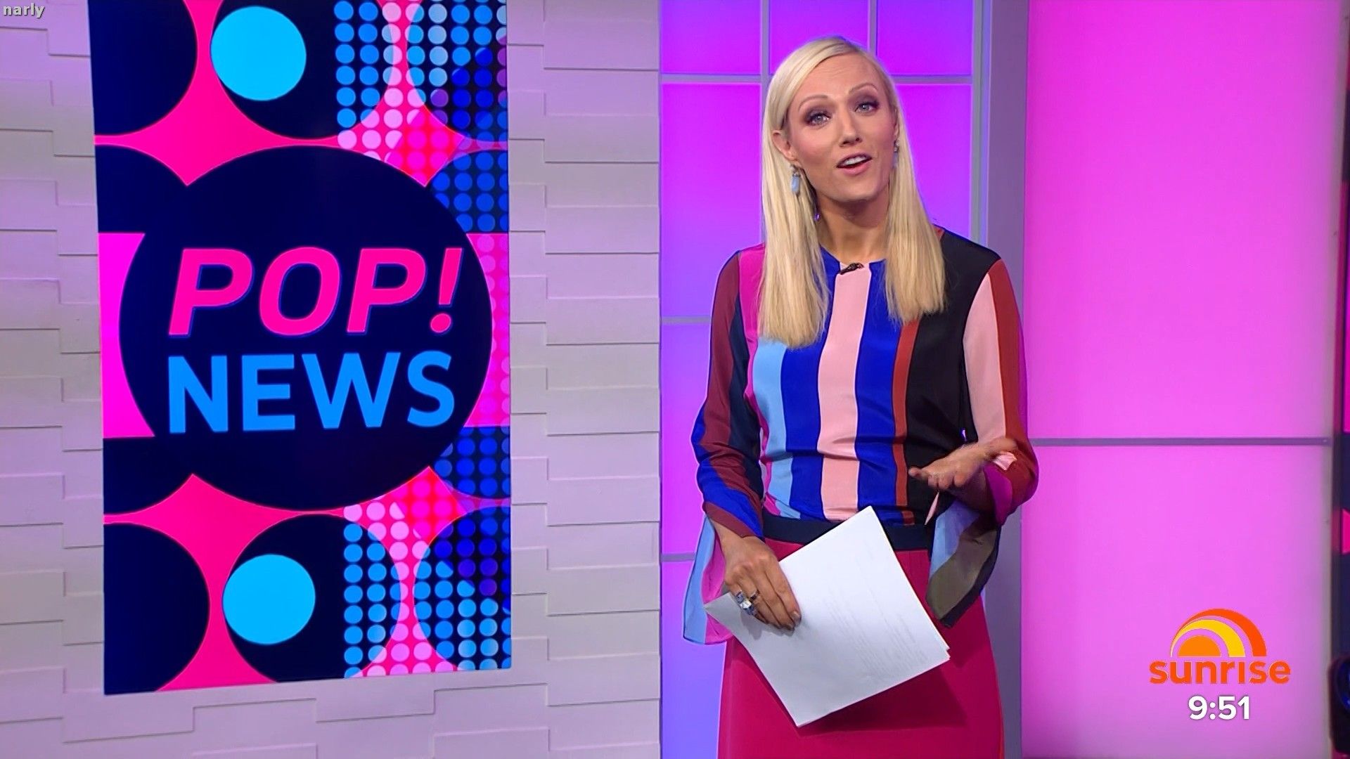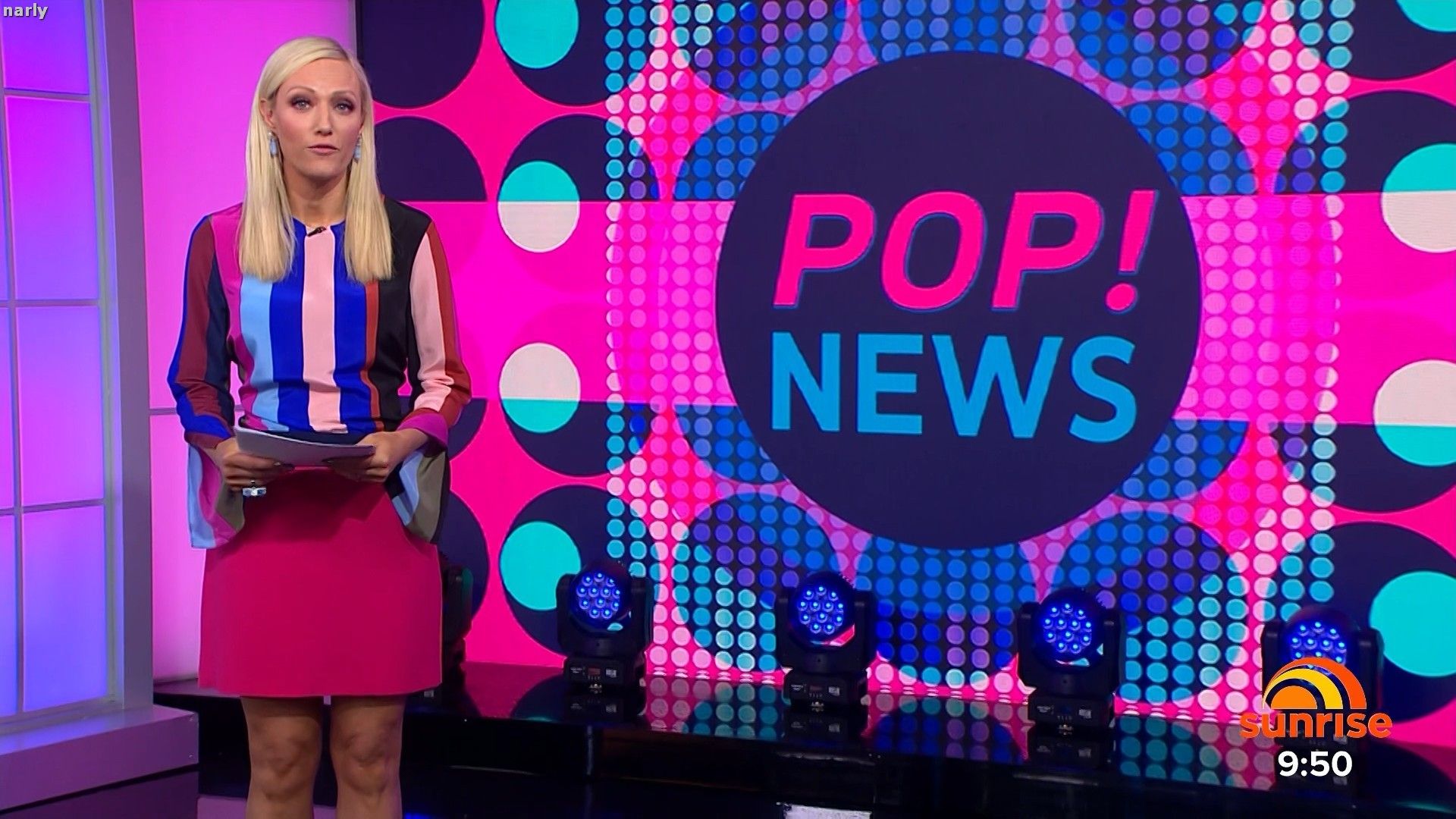 Legs out today. Short pink skirt. Such a stunning body. The walk at the end of pop news was sexy.