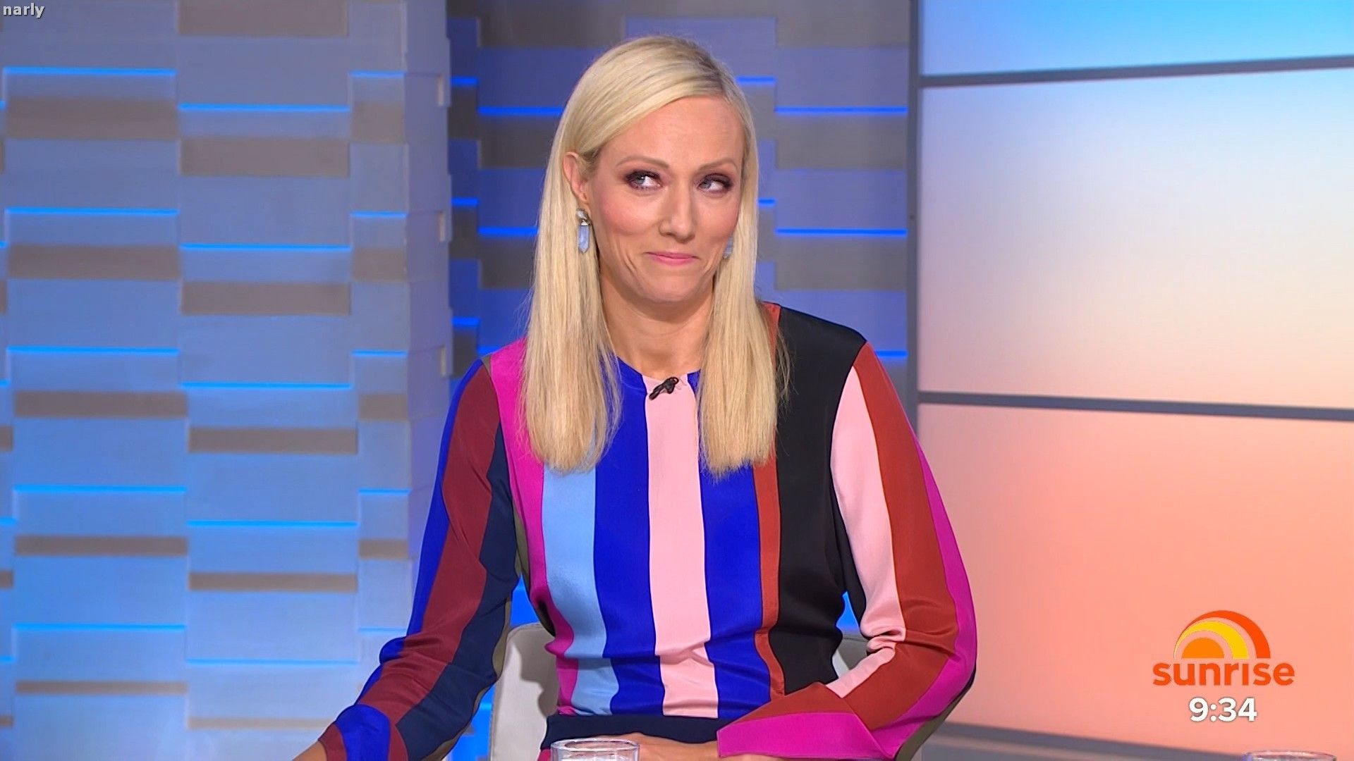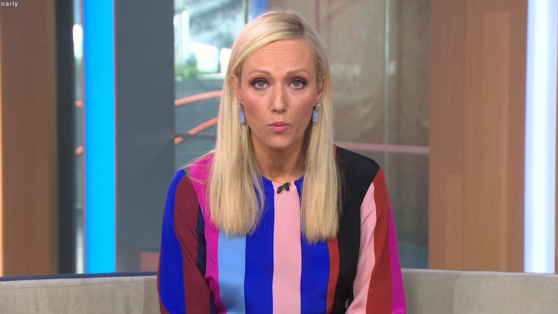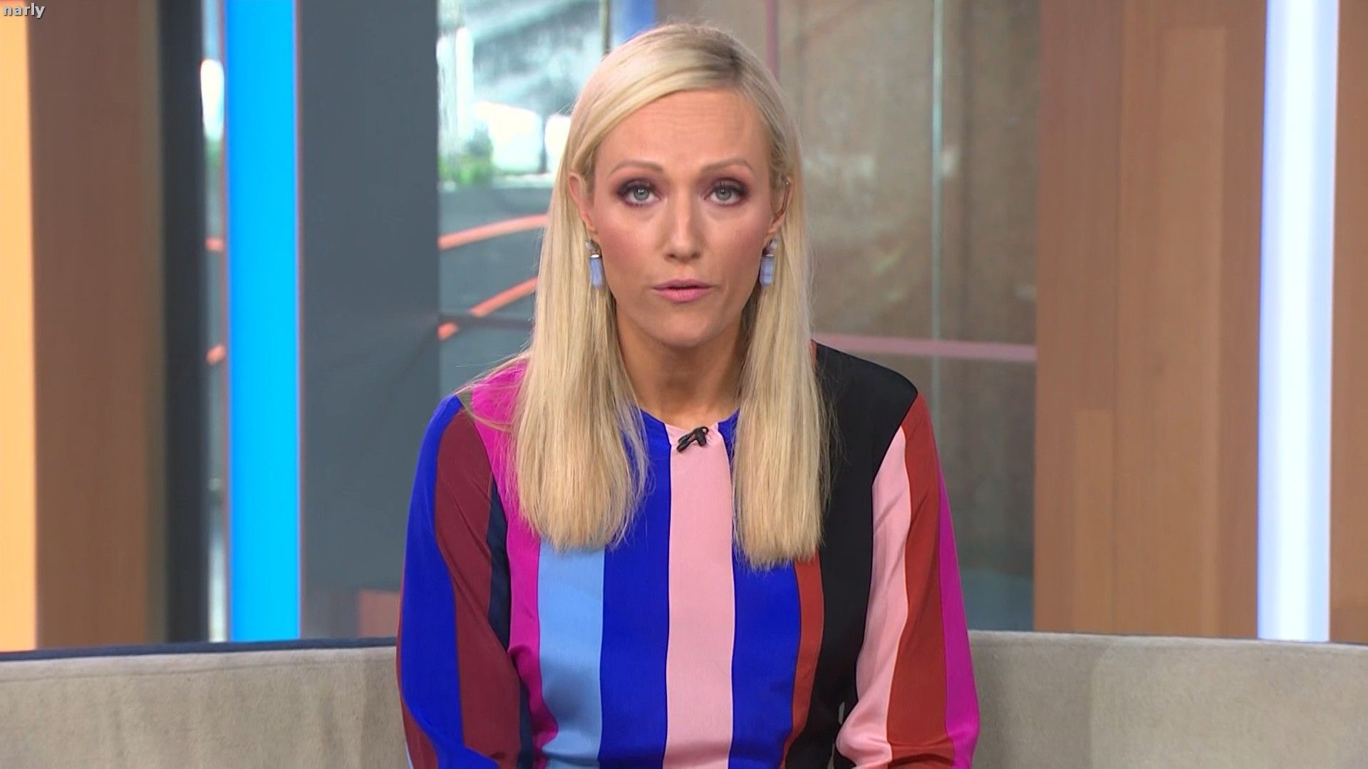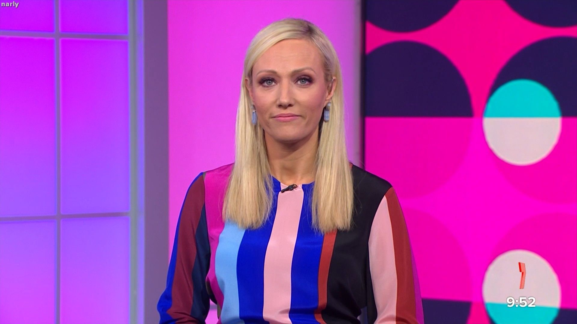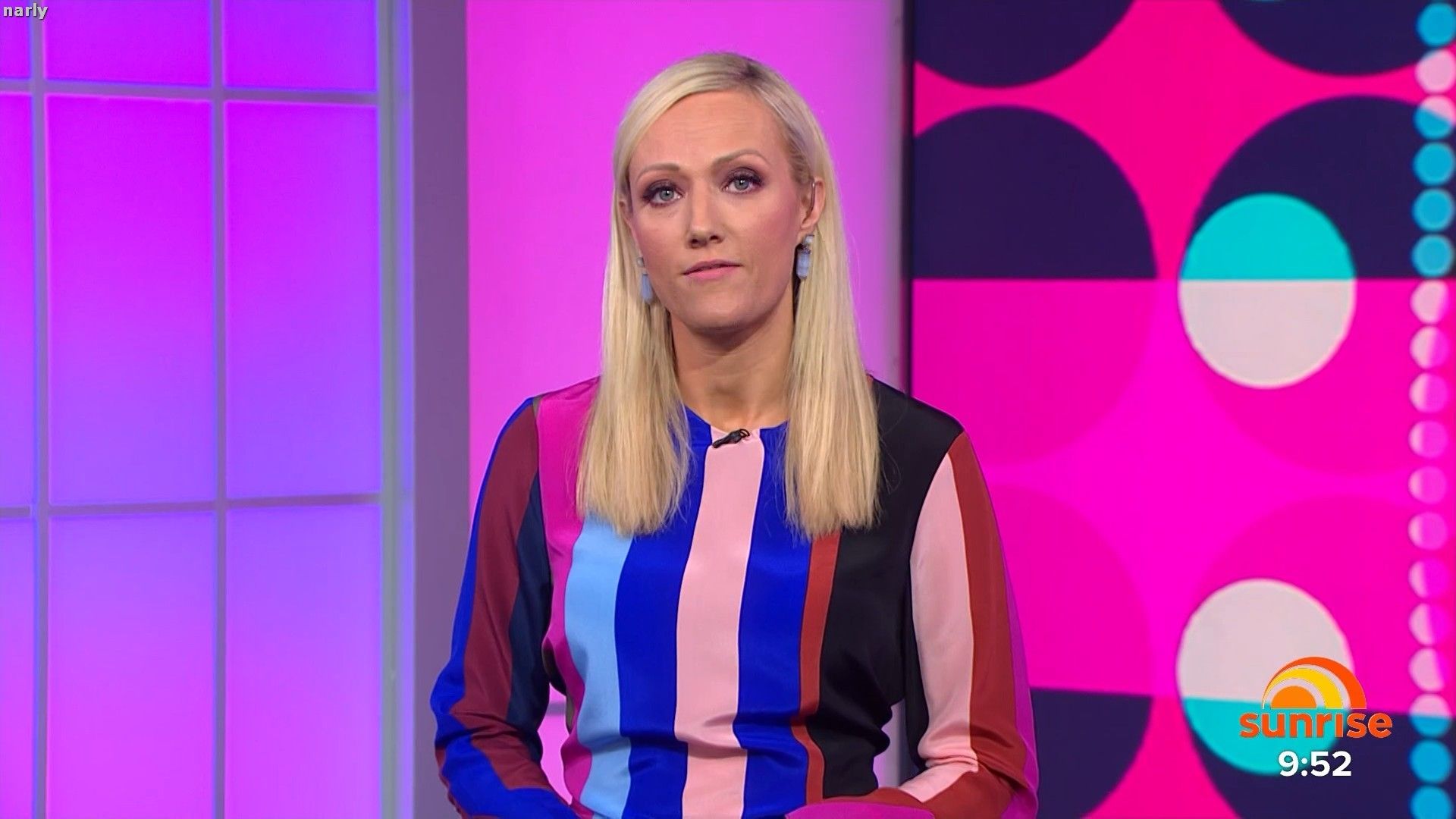 Legs out today. Short pink skirt. Such a stunning body. The walk at the end of pop news was sexy.
