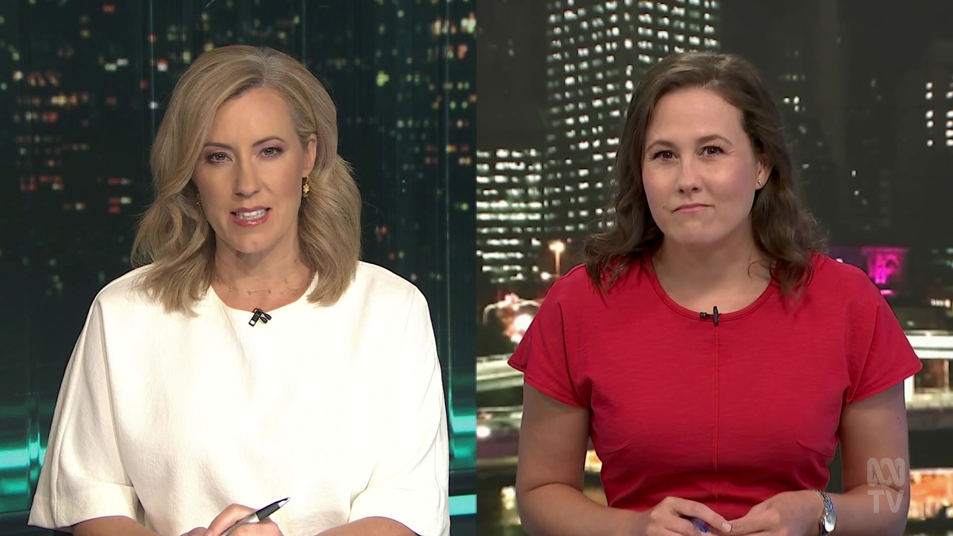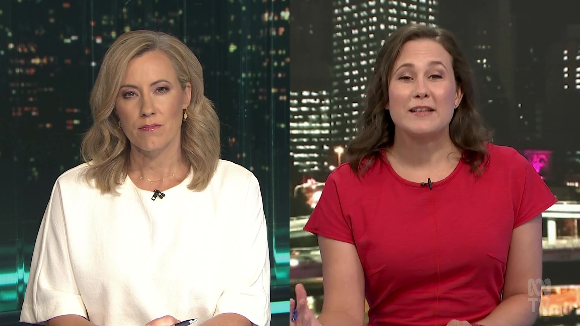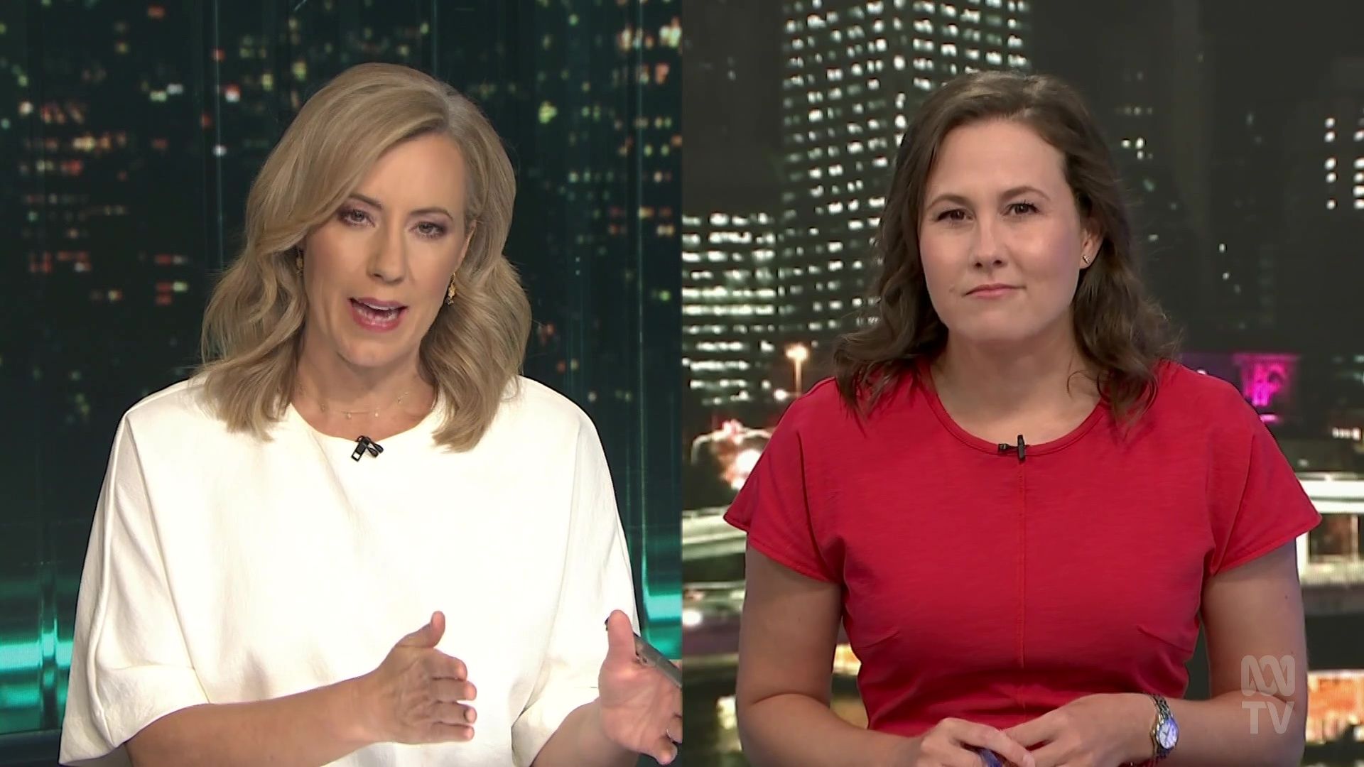 Yep 20b, but still mostly covered up with a loose top...at least her forearms are visible! Contrast with Rachel in a short-sleeved dress. Kath, you own similar dresses....wear them, it's Summer! So the die is cast with Kath hosting The Business. Upside for her (and us), is that she is in a predictable timeslot Mon- Thurs. Downside is Kath will not get the profile and exposure on other programs, particularly The Drum. And the unchanging format of The Business means Kath is stuck behind a desk....at least the studio interviews have been revived post covid. There are no promos for The Business....it is very low key, stuck away in an awkward timeslot on the news channel. No wonder Kath has to keep mentioning to catch it on iview, as that is probably it's principal audience. Still, I watch it... for her!