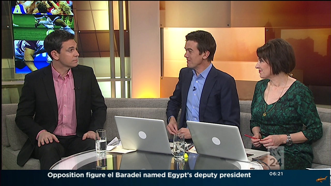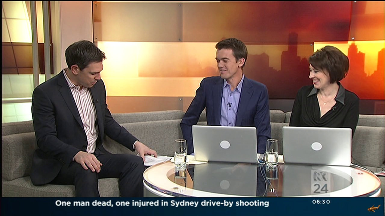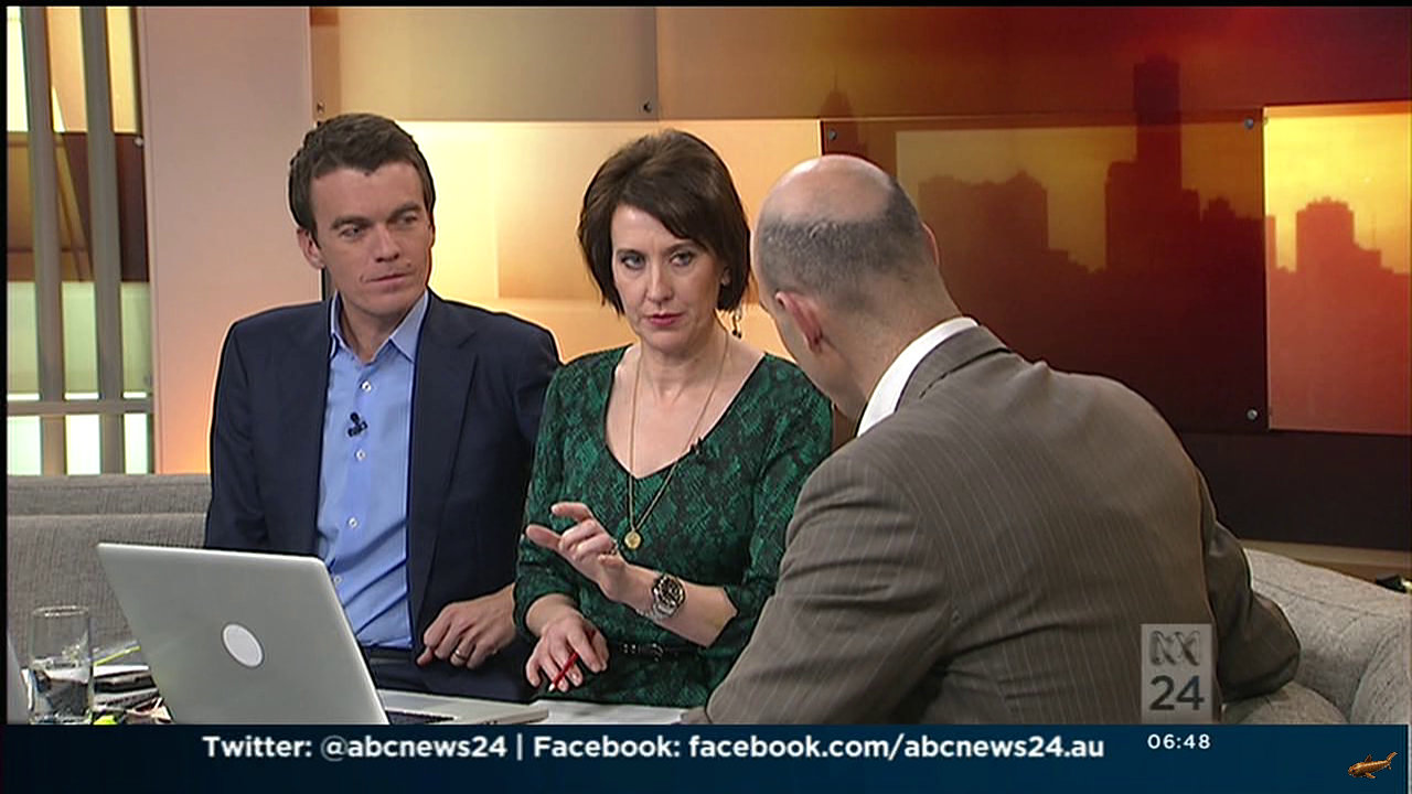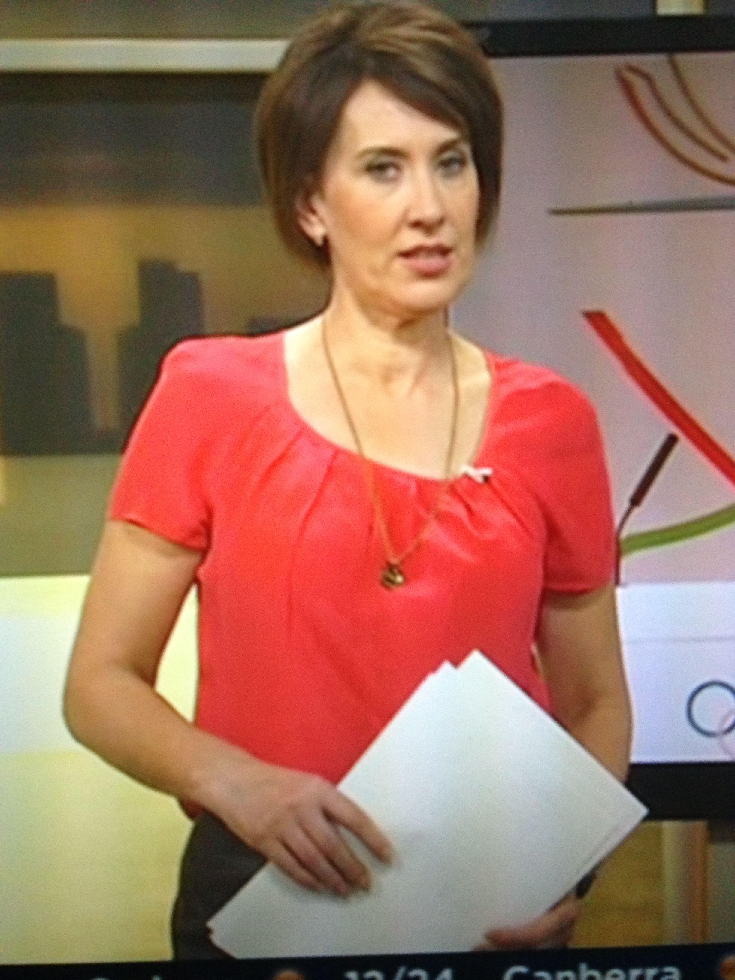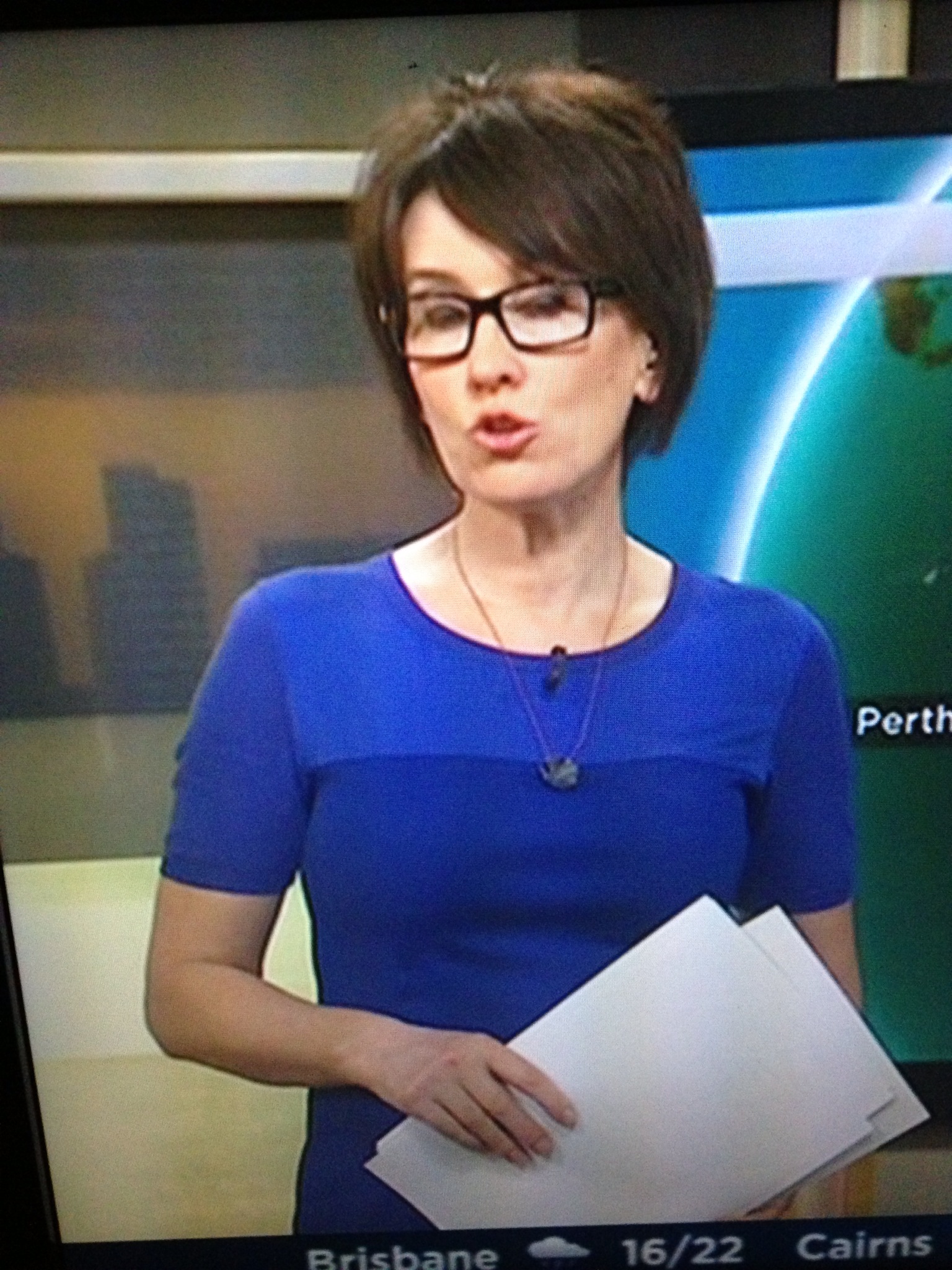 Joint Staff wrote: Morning all. Would someone please post caps of Virginia wearing her leather / vinyl skirt from this morning's ABC Breakfast show? I know hey!! She was wearing blue with specs this morning. One viewer said they were too masculine?! Looks alright to me. (Excuse the crappy phone photos)  .